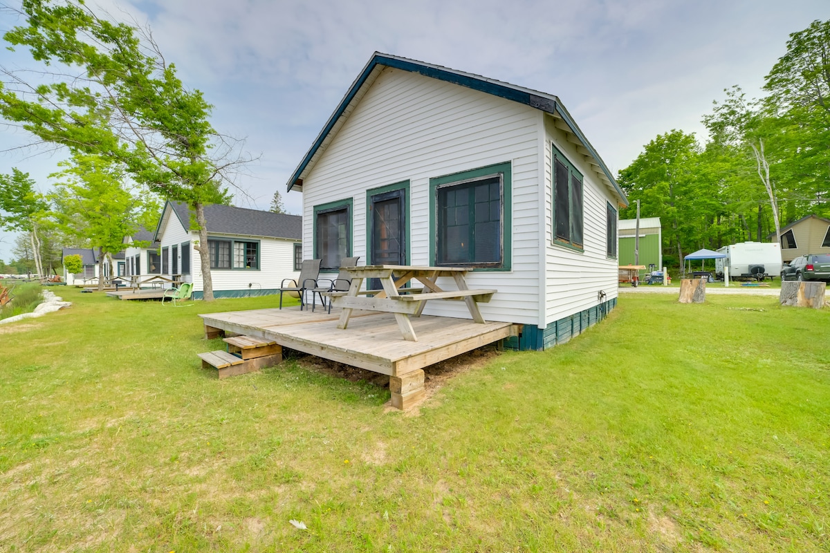 Uživajte v odmaknjeni in posodobljeni koči v obliki črke A, obkroženi z visokimi borovci in jasnim modrim jezerom ob jezeru Huron. Uživajte v čudovitem razgledu in zvokih, ki jih ponuja jezero, medtem ko uživate v kavi ali koktajlih na terasi, le nekaj korakov stran od obale. V mestu Cheoygan/Rogers City /inac boste dovolj blizu vsem, vendar dovolj daleč, da boste lahko uživali v sproščujočem večeru, udobnem do požara pod nočnim nebom. Več kilometrov peščenih plaž, kolesarskih stez, slapov Ocqueoc in Rogers City, vse v roku 15 minut.