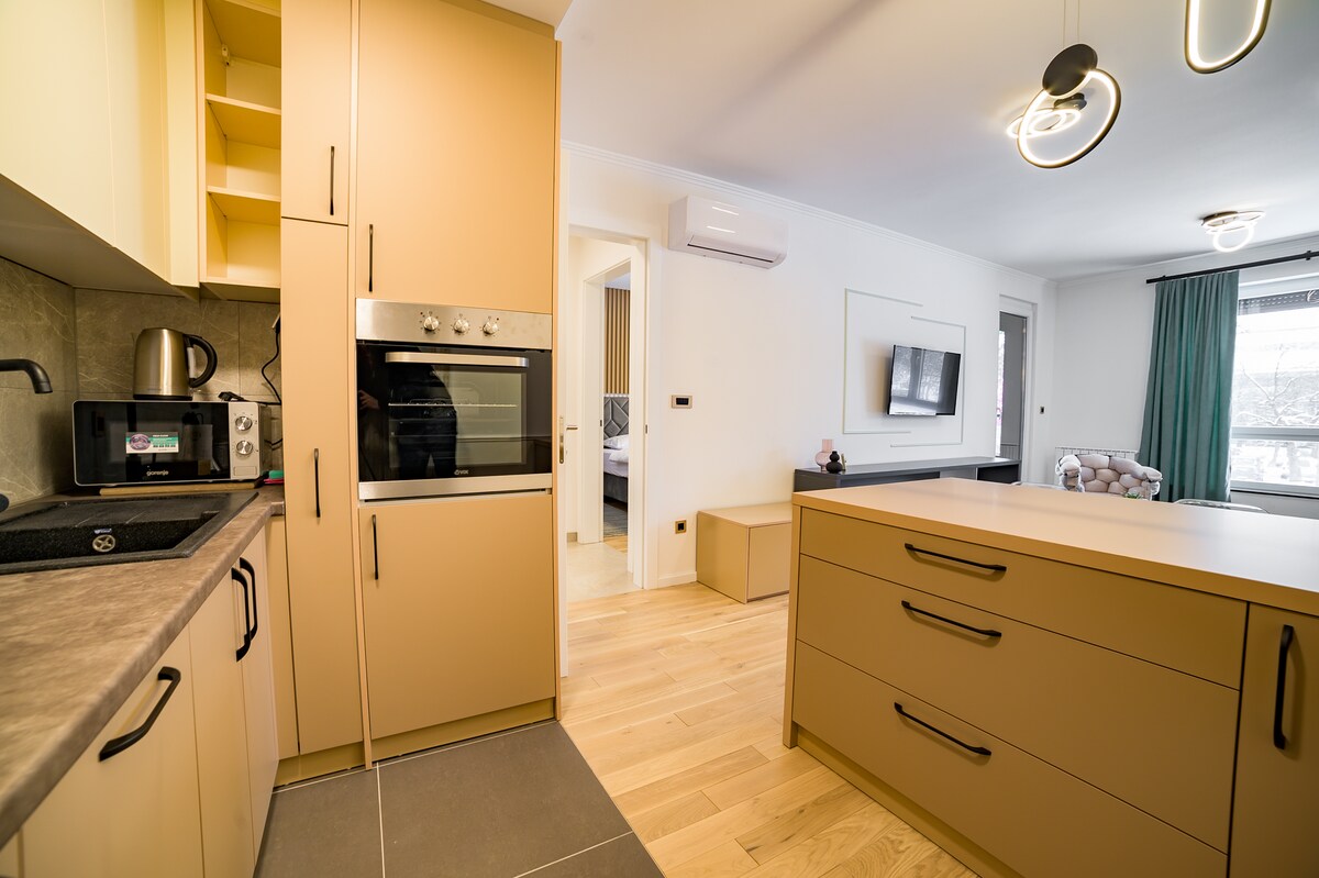 Enjoy your stay in a modern apartment located in the city center, in a newly built building with a pleasant and peaceful atmosphere. The Panonian Lakes are just a 100m walk away, making this accommodation a perfect choice for a relaxing holiday or a short stay.
