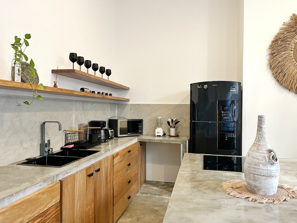 🌿 Čarobna vas v džungli Majev, le 6 minut od plaže (1,5 km). Narejeno iz materialov iz regije in zasnovano za prave ljubitelje narave. Prebudite se s petjem ptic in živite med lokalno floro in favno: tlacuaches, coatíes, lagartijas in žuželke. Brez zabav, alkohola in cigar - zatočišče je, da se odklopite in ponovno povežete z vami. Edinstveno doživetje, kot je običajno. ✨