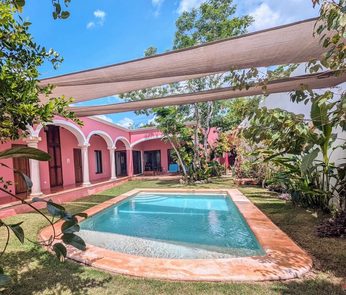 Dobrodošli v naši udobni hiši v čarobnem mestu Valladolid! Od zgodovinskega središča smo oddaljeni 5 minut vožnje, od cenote Zací pa 3 minute vožnje. Narejen je iz kamna in tropskih gozdov, s prostorno in svežo notranjostjo, osrednje dvorišče z osvežujočim bazenom in sadnim drevjem, ki ustvarjajo sproščujoče vzdušje. Zakonska postelja (King), klimatska naprava v sobi, kopalna kad s toplo vodo, Wi-Fi, opremljena kuhinja, bazen, na voljo non stop. Odkrijte popolno bivališče za svoje bivanje v kraju Sureña!