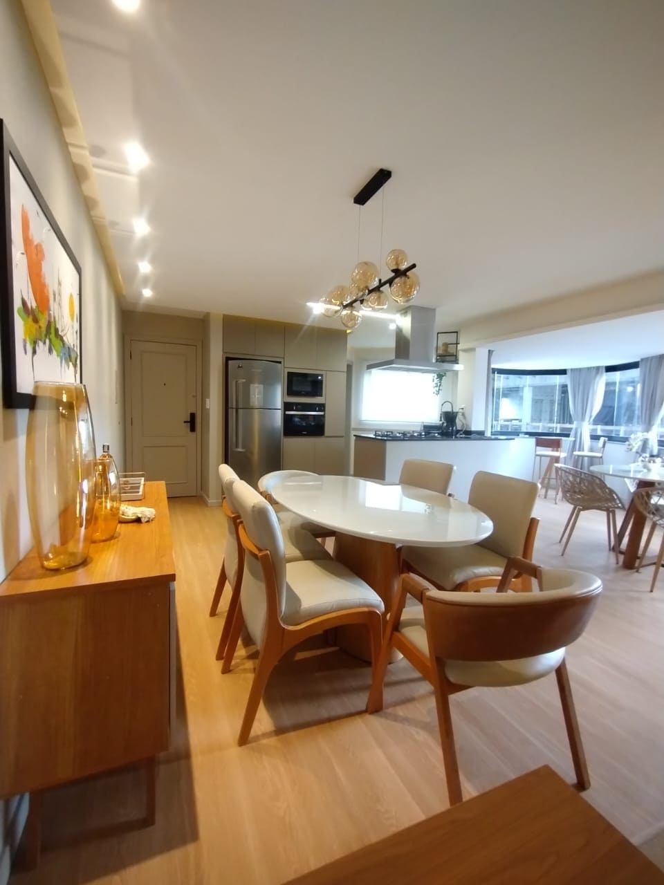 A localização espetacular, 100 m. do mar e da orla central e na avenida principal de Itapema. Recém reformado, climatizado, TV smart 55" na sala, canais básicos no quarto, Alexa, wi-fi. Quarto cama queen e 1 suíte com cama casal. 5º andar, 2 elevadores, ampla sacada integrada c/churrasqueira que proporciona uma vista pequena do mar. lavanderia com máquina. Garagem exclusiva e de fácil acesso (cabe SUV) e box p/ cadeiras praia(não forneço). aceita pet.