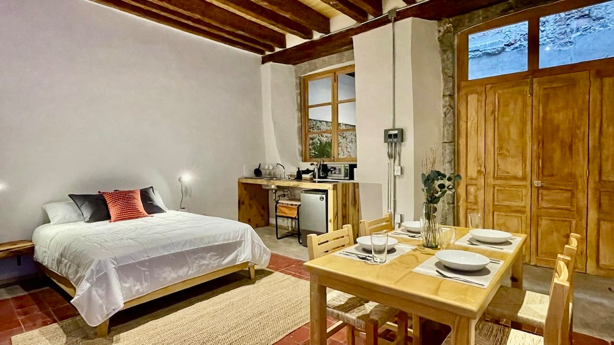 Novo predelano stanovanje v sodobni stavbi pred Alameda Central, idealno za dve osebi. Vključuje 50-palčno televizijo, dvigalo, kuhinjo, opremljeno z mikrovalovno pečico, zasebno kopalnico in Wi-Fi. Le 10 minut od zgodovinskega središča in v bližini legendarnih krajev, kot so Bellas Artes, Torre Latinoamericana in muzeji. Idealno za udobno, osrednje in elegantno bivanje v Ciudadu de Méxicu.