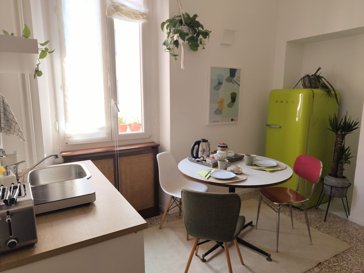 Na območju mode in oblikovanja v središču Milana, le kratek sprehod od znamenitega zbirnega mesta oblikovalcev in oblikovalcev v NIZKIH BARIH, je stanovanje popolnoma prenovljeno, vse v francoskem parketu, ki ga sestavljajo dnevna soba, spalnica, kopalnica in dva čudovita secesijska balkona. Stanovanje je v bližini podzemne železnice Lima-Loreto in površinskih vozil. Poleg tega je lokacija polna mesnih/ ribjih restavracij, barov, znanih po milanskem življenju, picerijah, tržnih lekarnah in trgovinah.