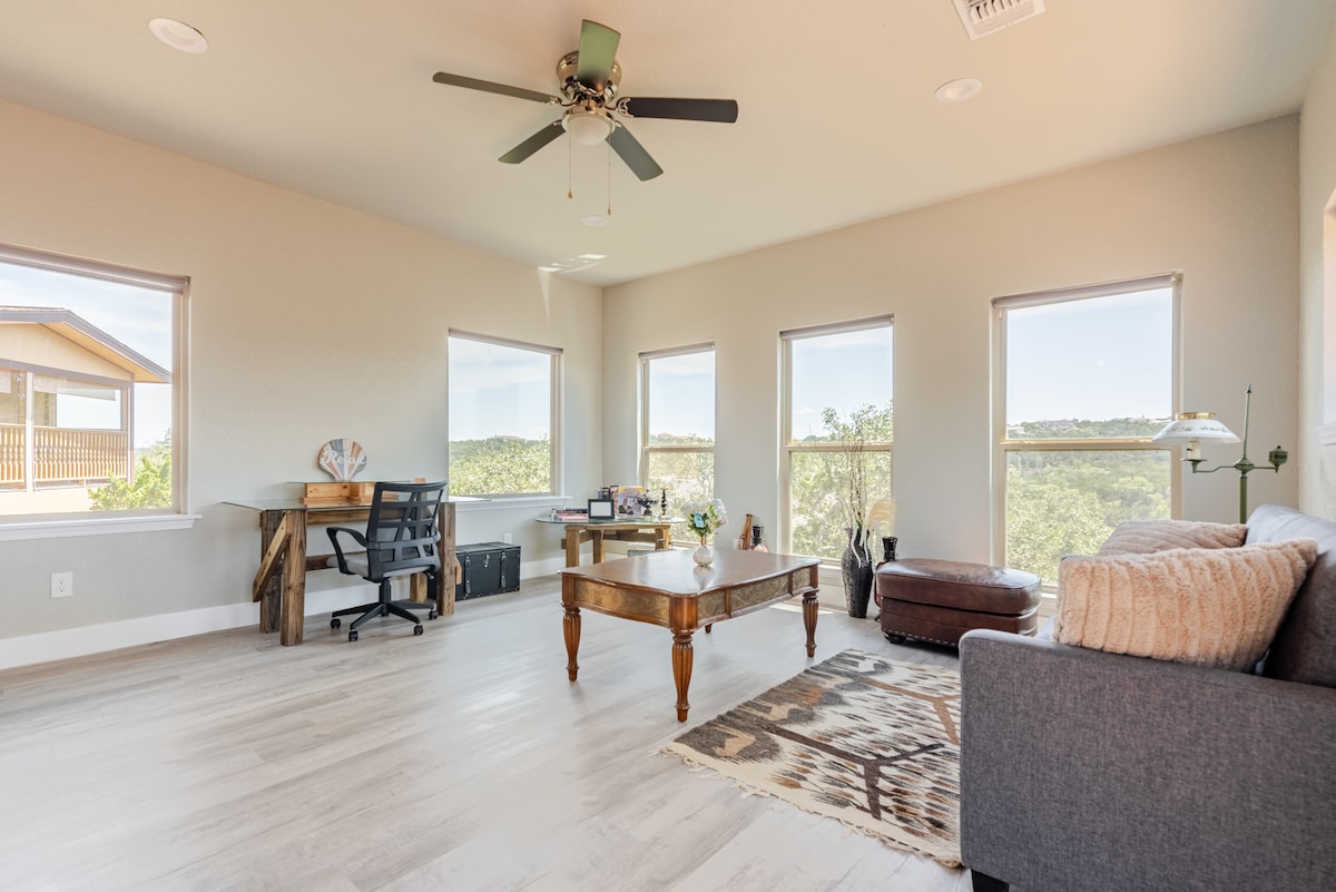 Pobegnite od vsega v tej udobni hiški na deželi, ki se nahaja v hribih Leanderja v Teksasu. Obkrožite se s čudovitim razgledom na Hill Country, medtem ko uživate v vsej opremi, ki jo ponuja prenočišče. Dve spalnici, dve kopalnici z WC-jem, popolnoma opremljena kuhinja, električni kamin v dnevni sobi in zadnja terasa, kjer lahko med obiskom uživate v čim več razgledu na hribovje. Prenočišče je tudi v celoti dostopno in ima dovolj parkirnih mest vzdolž polkrožne vožnje spredaj.