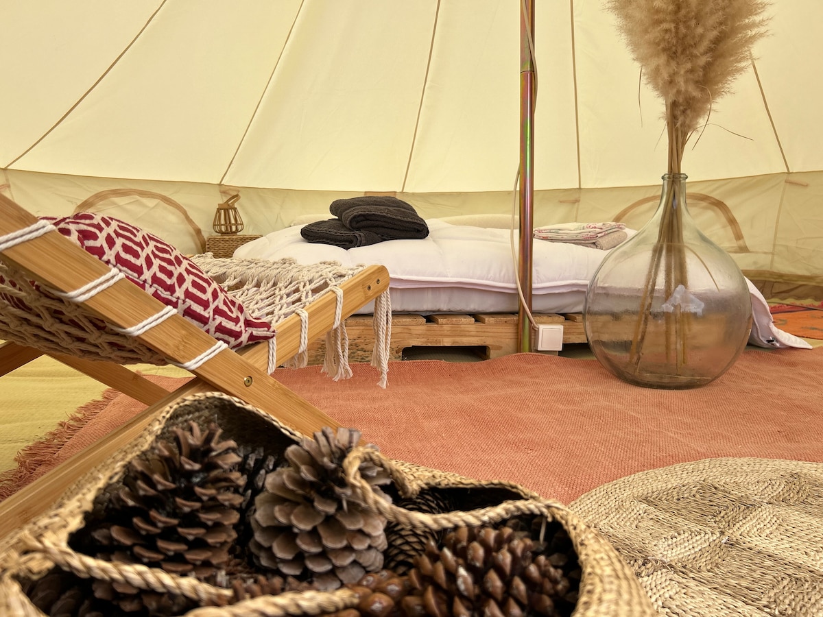 Doživite glamping oddih sredi narave v velikem šotoru Leïla na posestvu iz 19. stoletja v Seine-Portu. Udoben kotiček z zakonsko posteljo, pečjo na drva, boemskim dekorjem in sedežno površino. Uživajte na prostem z mizo, žarom in ognjiščem za večere pod zvezdami. Tišina je od Pariza oddaljena 45 minut in je idealna za sprostitev v paru ali sami. Sanitarni prostori in prha so v bližini. Sladki oddih med vodo in naravo.