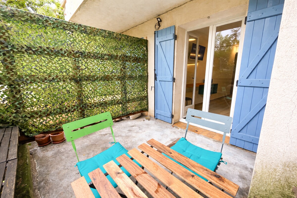 V središču Aix-en-Provence, zelo lepa enonadstropna vila v stanovanjskem območju, približno petnajst minut hoje od hipercentra. Obkrožena z drevesi in rastlinami ter opremljena z velikimi okni na štirih straneh, sta potopitev v naravo in pogled na goro Sainte Victoire izjemna. Vila se nahaja 5 minut hoje od Terrain des Peintres in ateljeja Cézanne. Idealno za 2 do 8 oseb, vila je na voljo skozi vse leto, klimatska naprava.