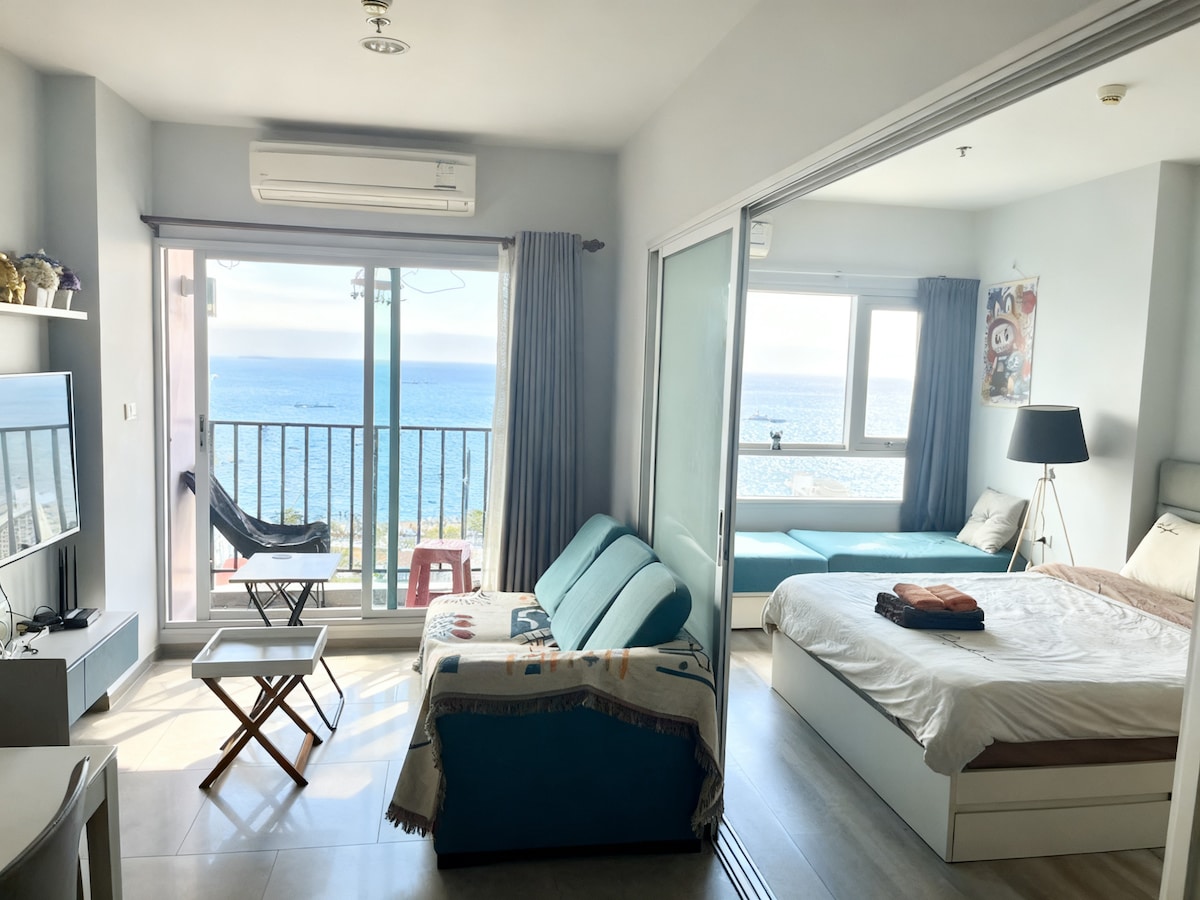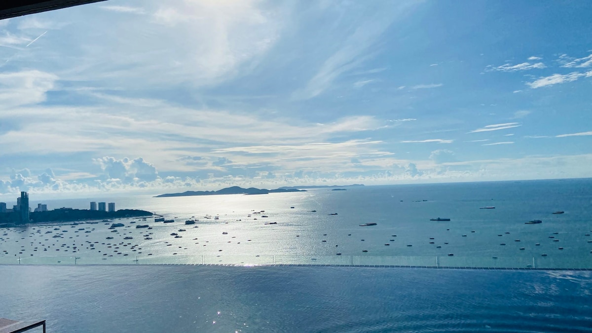 The ocean view room offers a 180-degree sea view. The surrounding area is well-equipped, close to Terminal 21 and Central Mall, and near the Big C supermarket. Songthaews (shared taxis) are available right outside the apartment, making it convenient to get anywhere. The beach is within walking distance. You can watch the sunset from your room's balcony in the evening. PS:I can recommend travel guides and show you around.