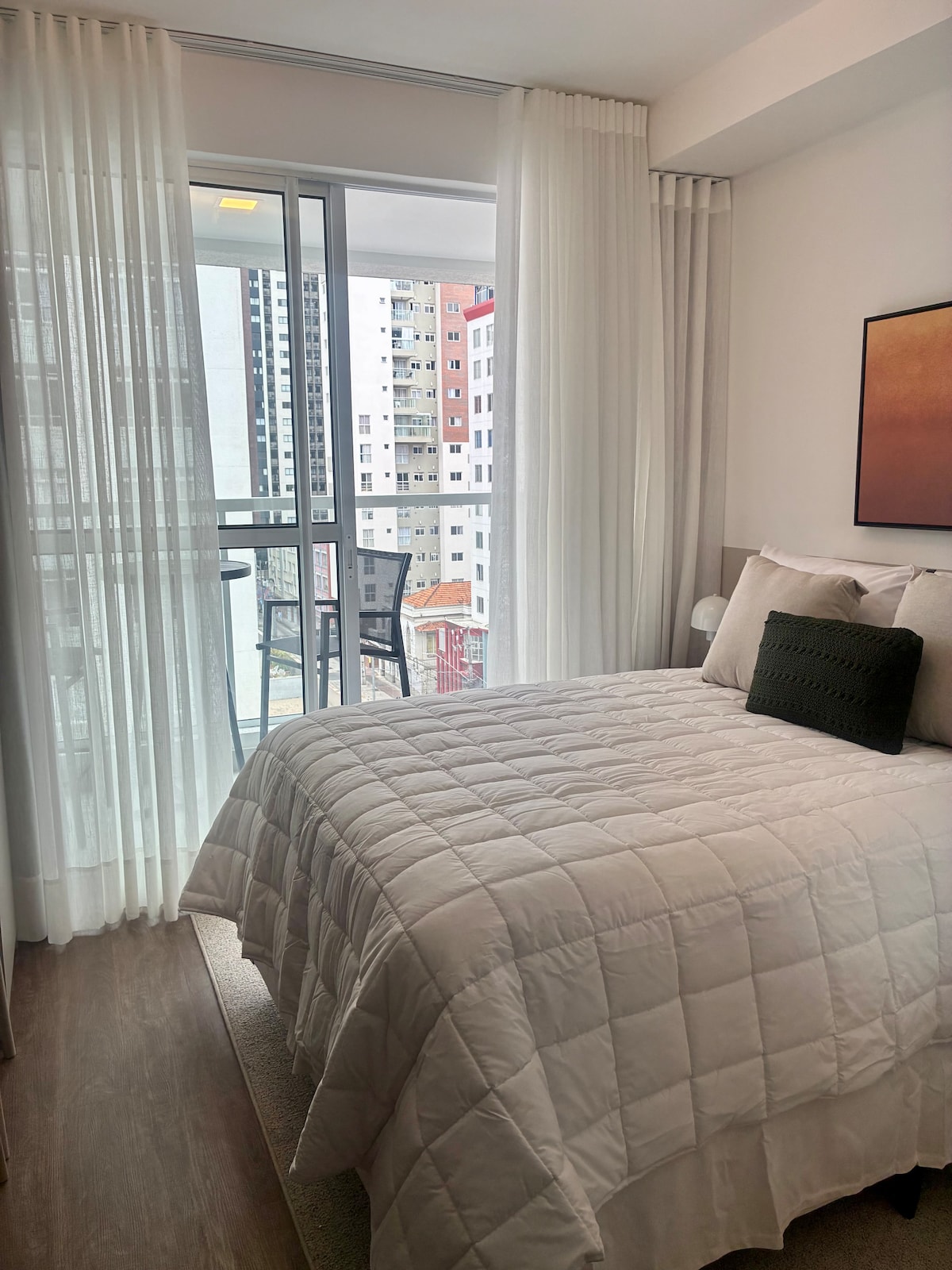 Dobrodošli v zatočišču na visoki ravni! V osrčju središča mesta Curitiba v 14. nadstropju ponuja edinstveno izkušnjo udobja in svobode. Uživajte v pogledu na sončni zahod na našem vrtu na višini! Feirinha da Praça Osório e Largo da Ordem, boste v središču dogajanja. Ko se vrnete, se sprostite v naši veliki zakonski postelji,obdani z velikimi in udobnimi okolji. Udobje, varnost in slog opredeljujejo naše prenočišče. Pridite in izkusite nepozabna doživetja! Veselimo se vašega prihoda!