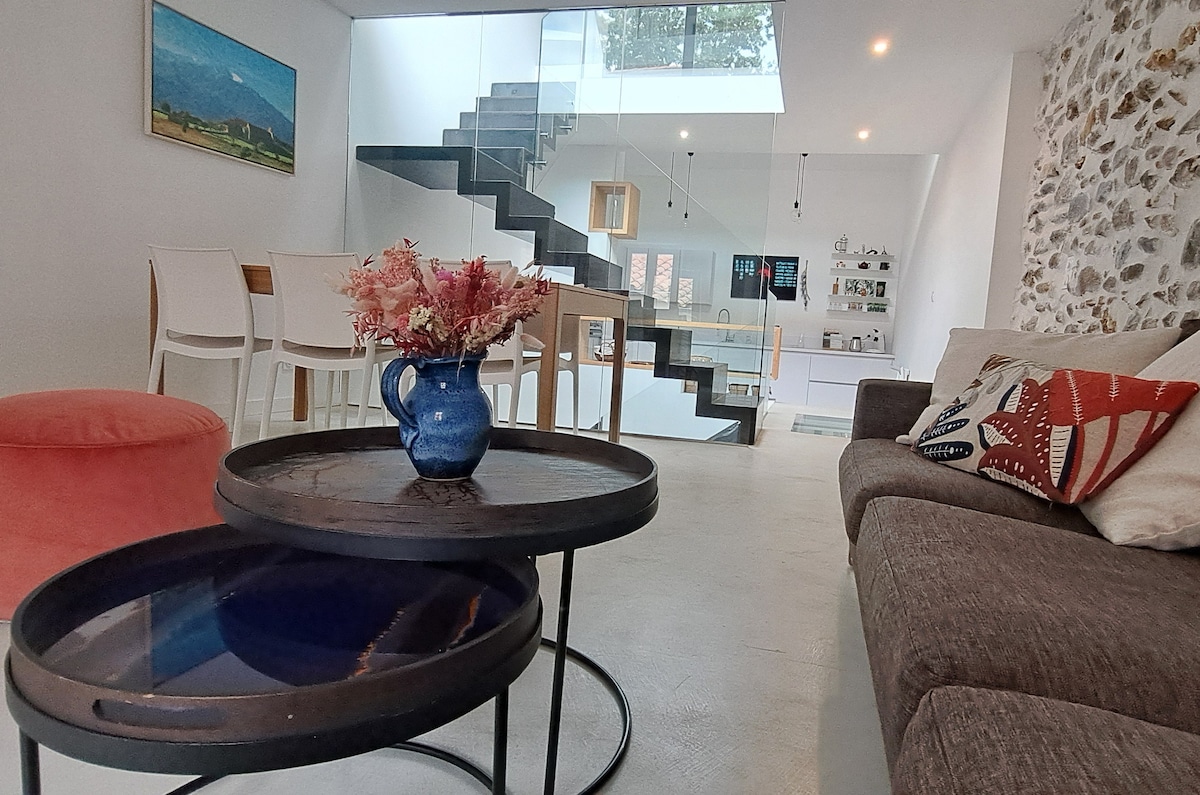 Odkrijte ta netipičen kraj, kjer lahko preživite nepozabne trenutke! Uživajte v vročem toplicah pozimi in osvežujočem poletju Odprto 7/7 , non stop, popolnoma zasebno , izven vidnega polja, ugnezdeno na »notranjem« vrtu. Navdušeni boste. Ta klimatizirana hiša je le nekaj metrov stran od trgovin z živili, pekarne, majhne restavracije in nekaj minut vožnje z avtomobilom od morja!