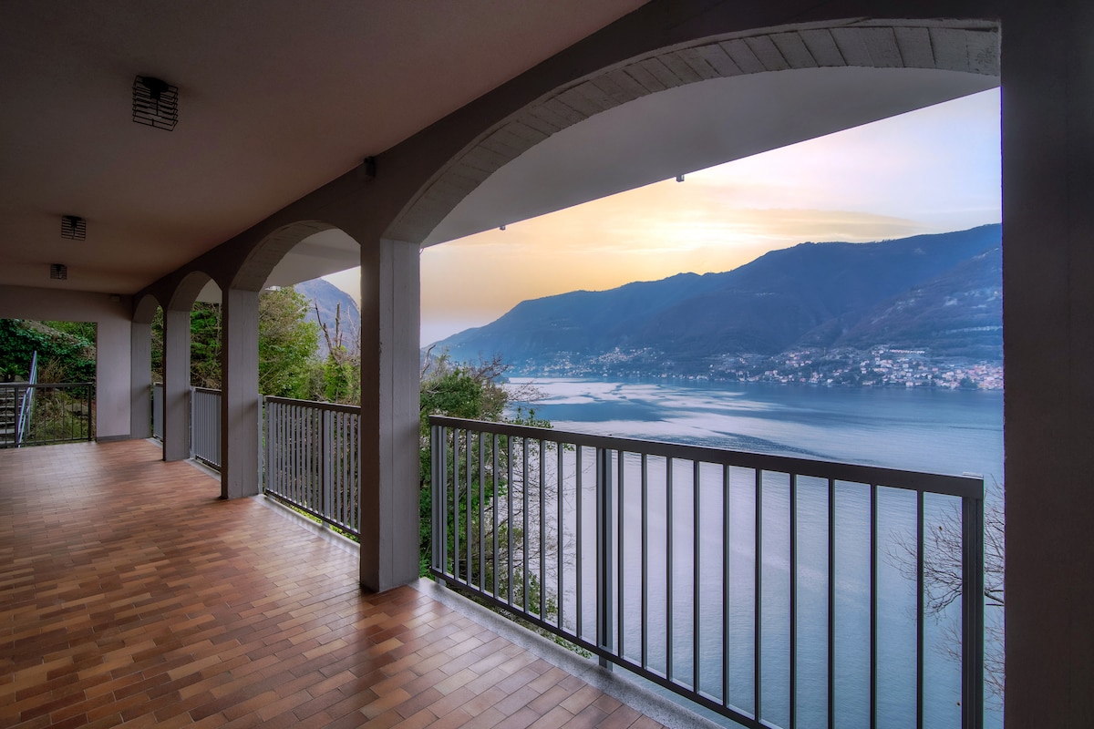 Vila s čudovitim pogledom na jezero, velikim vrtom z žarom, teraso s pogledom na jezero in varno parkirišče. Na voljo so 4 dvoposteljne spalnice, 3 kopalnice, jedilnica z lesenim kaminom, dnevna soba s pogledom na vrt, popolnoma opremljena kuhinja in otroška soba. PRIVILEGIRANA LOKACIJA, zelo mirna in varna, nekaj korakov od jezera in 5 minut vožnje z avtomobilom od središča Bellagia.
