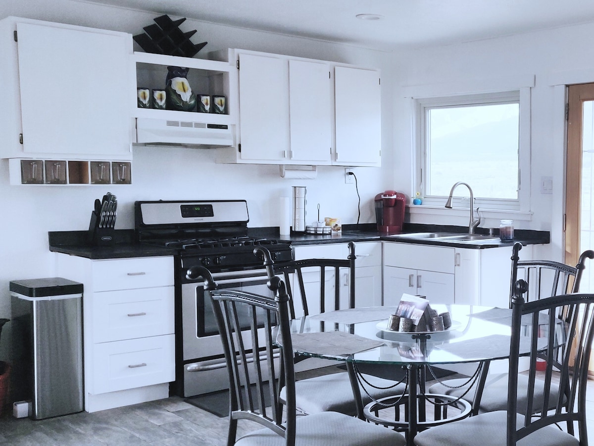 Hidden Haven offers a picturesque and cozy home on one acre. 360 degrees of beautiful views in Taos County. Great location for couples, individuals, or small families looking for open space and relaxation. Fast internet and desk-space allow for extended stays, streaming, and remote work. The home has two bedrooms and a family room. The family room sofa opens into a queen-size bed. Quickly travel to Red River (20 mins), Taos (25 mins), Colorado (25 mins). Plenty of room for work and play.