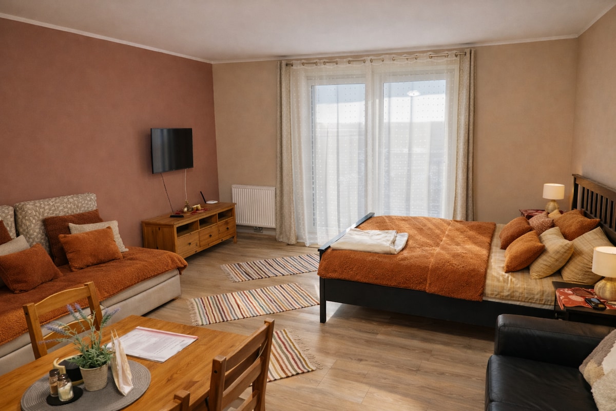 Naš udoben dom daleč od doma se nahaja na slikovitem, mirnem tlakovanem pasu, le nekaj minut od središča mesta. Je idealno izhodišče za raziskovanje mesta, vendar se umakne, ko potrebujete počitek. Premišljeno, v celoti opremljeno enosobno stanovanje lahko sprejme pare ali majhne družine z majhnim otrokom. Raztegljiv kavč lahko sprejme tretjega gosta. Stopite v stik z nami, da uživate v zasebnosti in udobju celotnega stanovanja s čudovitim razgledom na reko. Veselimo se vašega odgovora.
