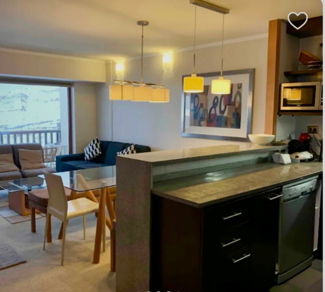 Disfruta la comodidad de este alojamiento a pasos de la Clínica las Condes, supermercado Líder, mall Alto las Condes, pubs y restaurantes. Excelente acceso a carreteras y locomoción! Muy acogedor, full equipado con capacidad para recibir hasta 4 personas. Cama de 2 plazas y futón 2 plazas :) Cocina full equipada, baño con tina, termo panel (aísla frío y ruido) y rica terraza. Calefacción eléctrica, wifi y TV. Cuenta con piscina, espacios comunes, quinchos en la azotea y lavadora. PETERIENDLY