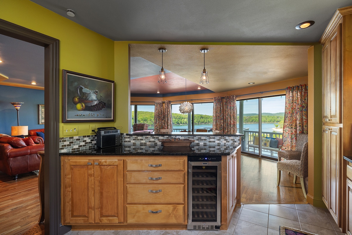 Zaradi spremembe lastnika prosimo, da vsa prihodnja bivanja – z začetkom v avgustu – rezervirate v naslednjem prenočišču: airbnb.com/h/treehouse-with-lake-view-n Pridite uživati v tej hiški ob jezeru, ki ima 3 spalnice, 2 kopalnici, 2 prostorni dnevni sobi s pametnimi televizorji in satelitsko televizijo. Kamin na drva v 1. nadstropju, knjižnica in družabne igre v 2. nadstropju. Sprostite se in uživajte v topli ali hladni pijači na strešni terasi s panoramskim razgledom na jezero Table Rock in lepoto gorovja Ozark.