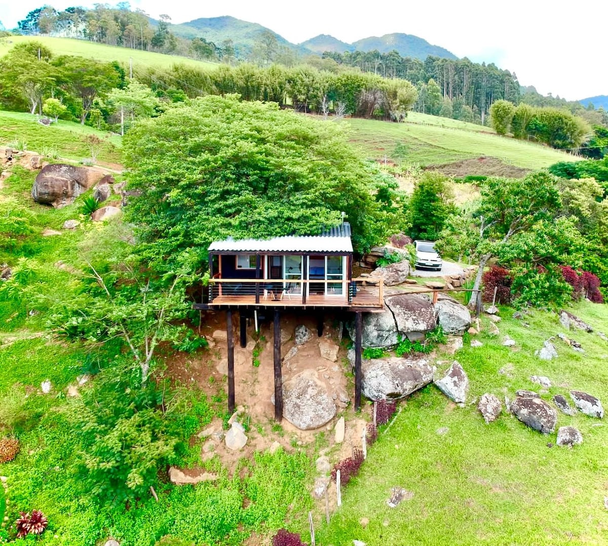 Stone Ark with a unique design, featuring a Mykonos-style mini-pool + hydro, lighting, sound, comfort, and sophistication, floating above the mountains of Gonçalves. Enjoy the stunning sunset, the magnificent starry sky, and stroll through the lush fields of the Green Mountains of Minas Gerais. “Experiencing Mont Sha’n is unique and inspiring: a journey of reconnection and energy renewal, with a strategic location for lovers of ecotourism, gastronomy, trails, and waterfalls.” 👇🏻