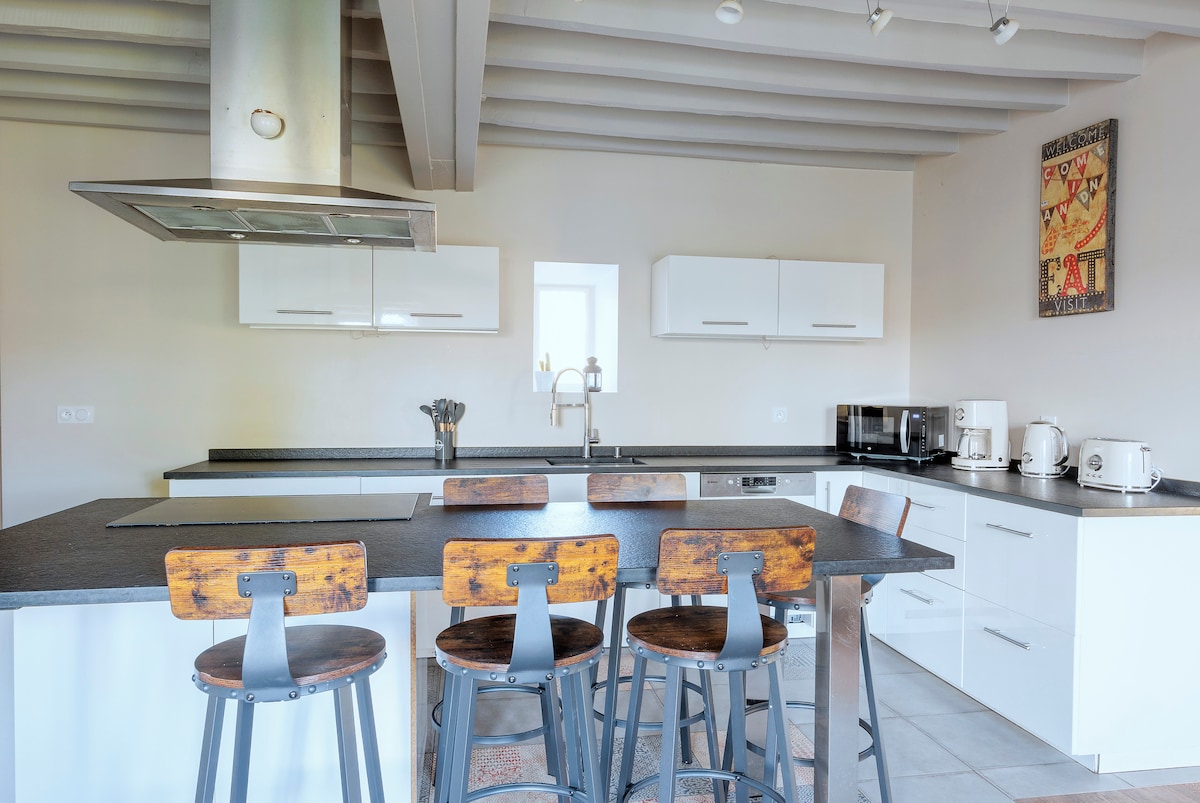Odkrijte to očarljivo hišo, vklesano v pečino, ki je kot nalašč za bivanje v dvoje: – Spalnica z zakonsko posteljo, masažno kadjo, osvetljeno s svečami, nastavljivim televizorjem in italijansko prho. - Dve dnevni sobi s televizijo, preveč opremljena kuhinja, štedilnik na pelete, zabava: Netflix, PlayStation 5, Switch, pikado... - Terasa z vrtnim pohištvom. - Pisarniški prostor z dvojnimi zasloni in garderobo. Mirno, toplo in netipično bivališče med rustikalnim šarmom in sodobnim udobjem.