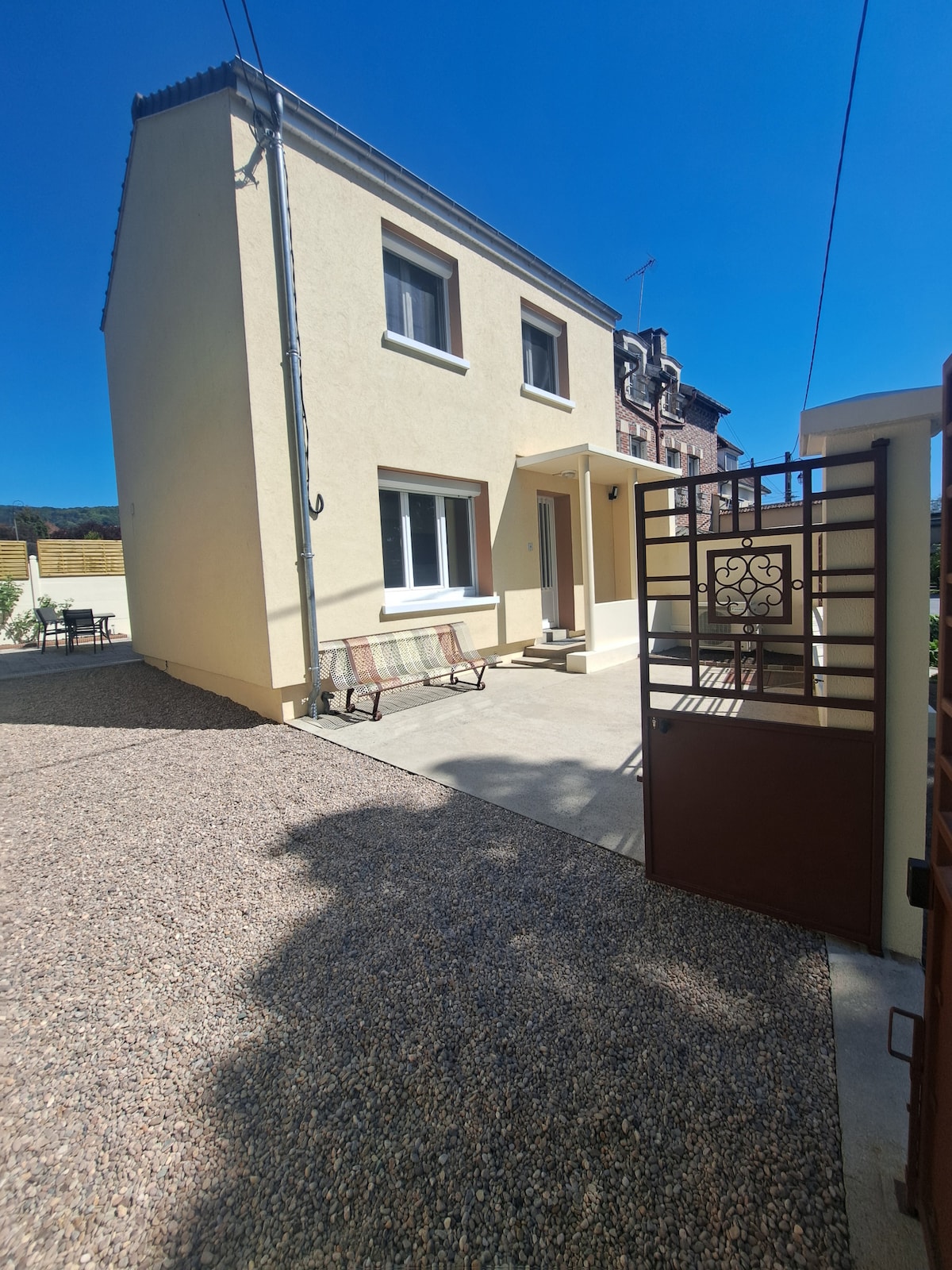 Vrhunska popolnoma prenovljena hiška na deželi s konca 18. stoletja. 5 velikih spalnic, popolnoma opremljena kuhinja, velika jedilnica/dnevna soba s kaminom, izjemen bivalni prostor v 2. nadstropju s kavčem, 75-palčna televizija, miza za namizni nogomet (otroško stopalo), hitri WI-FI (optična vlakna). V celoti zaprto dvorišče s teraso, zunanjo sedežno garnituro, mizo za namizni tenis in žarom. Zelo mirno okolje za uživanje v francoskem podeželju. Hišni ljubljenčki so pogojno dovoljeni. Pred rezervacijo se obrnite na nas.