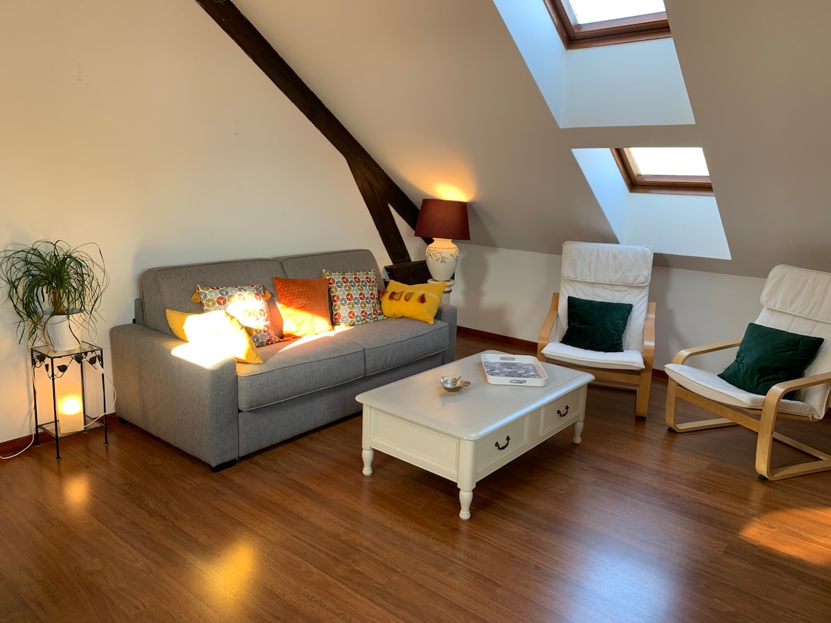 »Le Perchoir« je podobno strehi Troyesa, nobena druga nastanitev pa ponuja tako osupljiv razgled na zgodovinsko središče :) Zapeljala vas bodo storitve tega okusno urejenega in opremljenega stanovanja! ☆ Panoramski razgled na središče mesta ☆ Nahaja se 100 metrov od železniške postaje Center ☆ mesta 100 metrov od stanovanja ☆ 4K projektor ☆ Vrhunski zaključki Posteljnina ☆ Simmons 160x200 ☆ Vrhunski televizor in zvočni sistem ☆ Trgovine 1 min stran Potrebujete informacije? Stopite v stik z mano :)