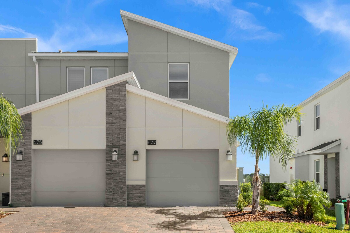 NA NOVO ZGRAJENO zasebno prenočišče. Uživajte v elegantnem doživetju s popolnoma opremljeno kuhinjo in VSEM, kar je popolnoma novo. Za največ 6 oseb v 3 posteljah/2 kopalnici. Vključuje 1 veliko zakonsko posteljo in 4 enojne postelje s televizorjem v vsaki sobi. Uživajte v arkadni igri in se sprostite na sproščujočem odprtem prostoru. Povežite se z omrežjem Wi-Fi in uživajte v namenskem delovnem prostoru. Varna in zaščitena pametna hiša v ograjeni skupnosti. Dostop do bazenov v slogu letovišča, športnih igrišč in še več. Minute od številnih zabavnih krajev, vključno z Disneyjem, trgovinami in restavracijami v bližini.