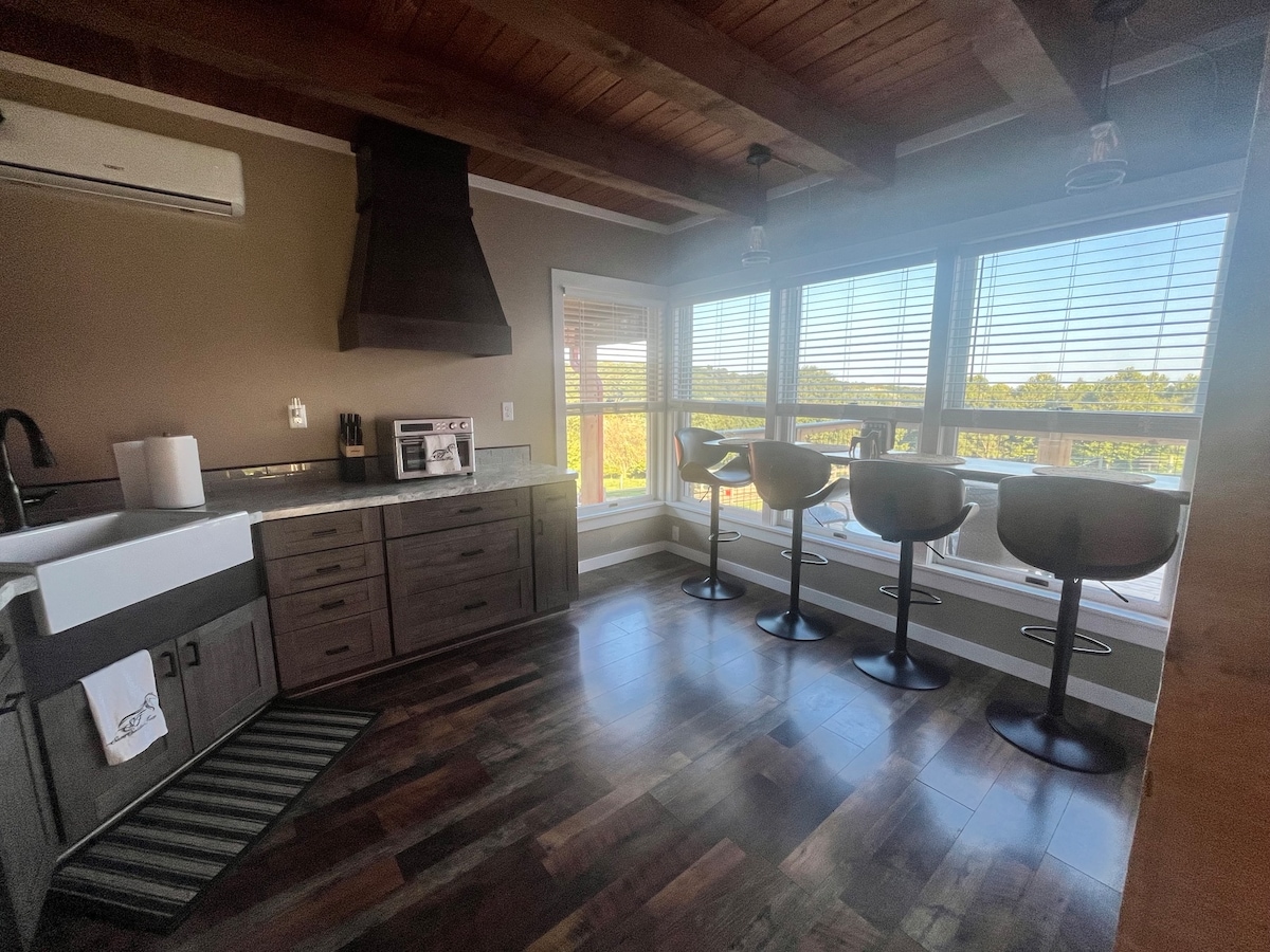 Čudovita koča je raj za ljubitelje narave z brbljajočim potokom, ki nudi tolažbo za telo in dušo. To je zatočišče, kjer boste lahko občutili prisotnost Boga, medtem ko se sprostite in globoko vdihnete. To prenočišče ima glavno spalnico z zakonsko posteljo (Queen) in drugo spalnico z enojno posteljo. Kuhinja je delno opremljena (lonci, posoda, kavni aparat, majhen hladilnik in starinski štedilnik, vendar brez delujoče pečice). Plinski kamin doda udobje bivalnemu prostoru.