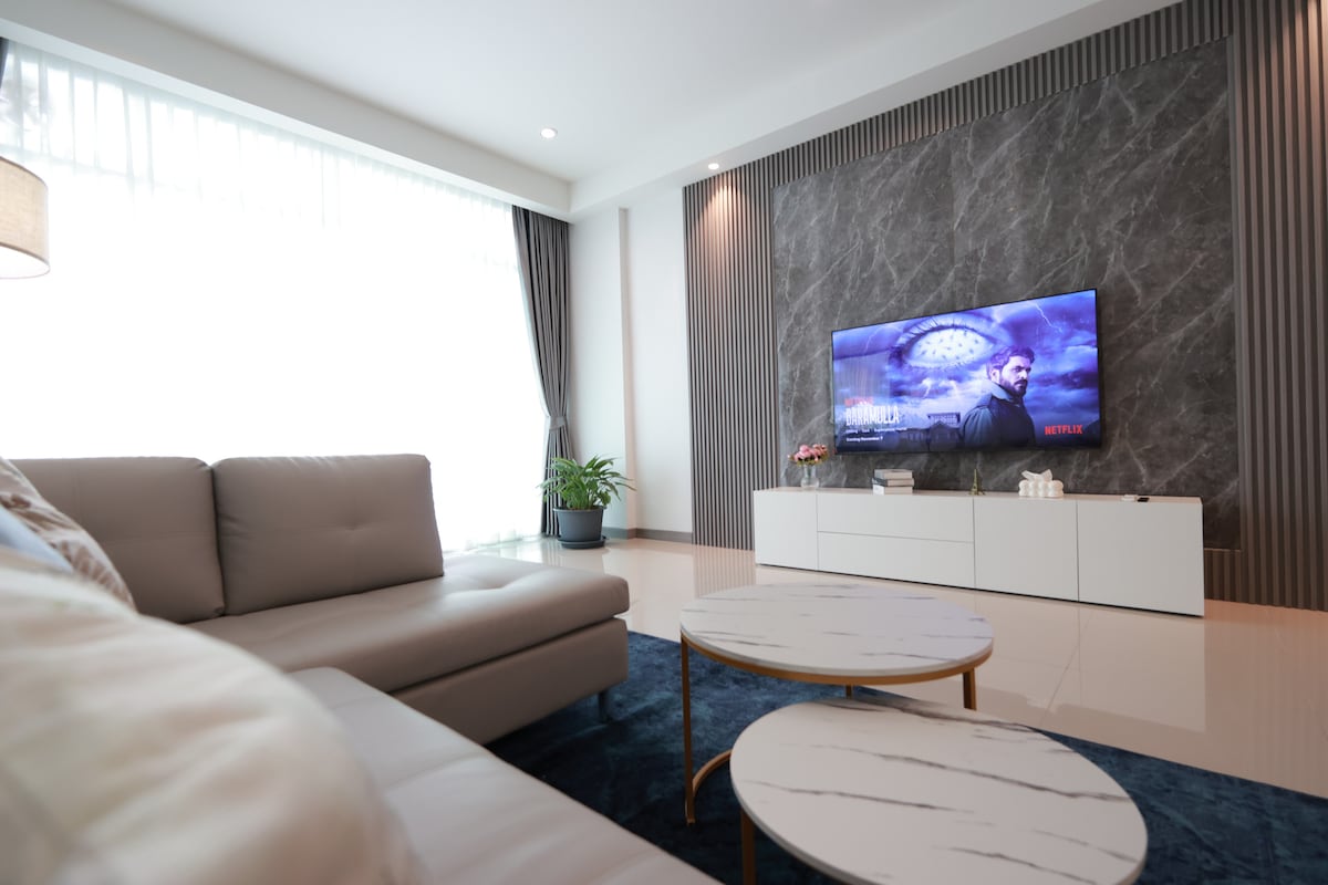 Uživajte v svoji razkošno opremljeni zasebni rezidenci, le 2 minuti hoje od znamenitega starega mestnega jedra Chiang Maija. Namestitev se nahaja na mirni prometni ulici in ponuja mirno udobje predmestja na priročni lokaciji v središču mesta. Namestitev vključuje: 2 spalnici z zakonsko posteljo, 1,5 kopalnice, hiter Wi-Fi, popolnoma opremljeno kuhinjo, pralni stroj, širokozaslonsko televizijo, klimatsko napravo, čistilnike za klimatsko napravo v vsaki spalnici in še več.