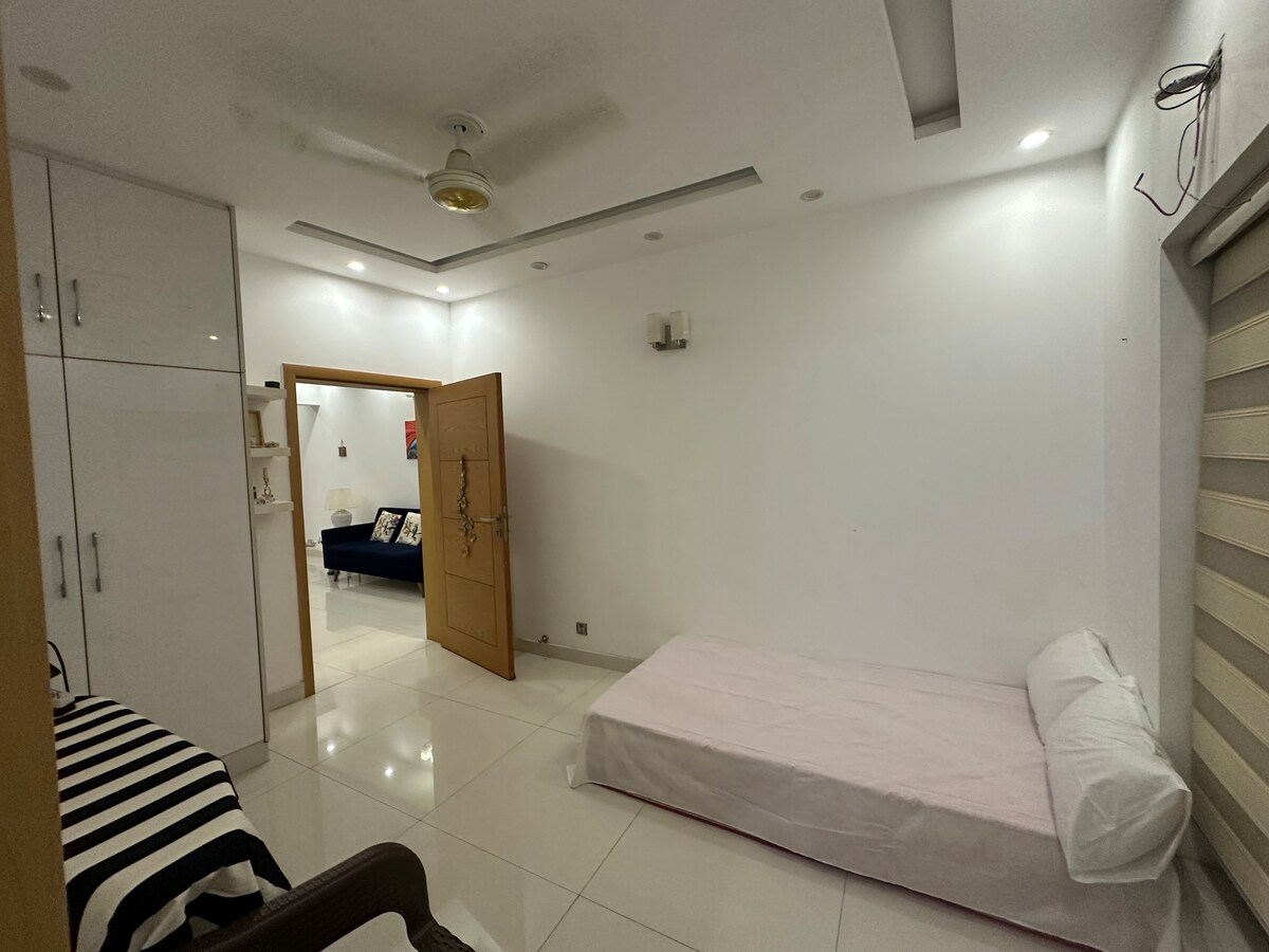 Enjoy a comfortable stay in this fully private 3-bedroom upper portion, perfect for families and groups of up to 6 guests. Located in a peaceful and secure neighborhood of Bahria Orchard, this space offers modern interiors, spacious rooms, and a relaxing environment away from the city rush.