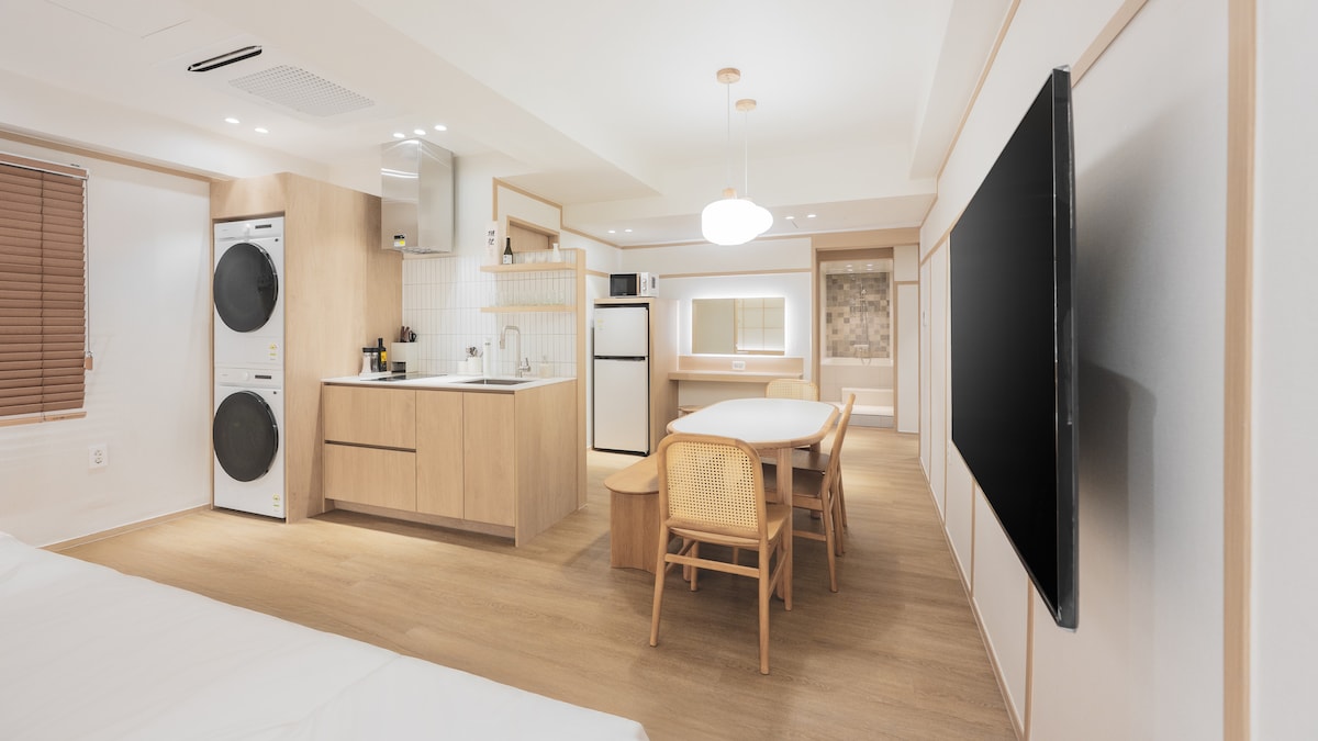 Ta prostor je pripravljen tako, da lahko uživate v udobju in posebnem času v sodobnem vzdušju. ▪️Samostojni vstop prek mobilnega telefona 5 minut hoje od postaje▪️ KTX, postaja SRT Busan ▪️Brezplačno parkiranje/polnilna postaja za električna vozila na parkirišču Optimalna klimatska naprava/ogrevalni sistem za▪️ vsak nadzor sobe Priročna dostopnost do mest▪️ Nampo-dong, Seomyeon itd. ▪️Haeundae, Gwangalli Sistemska klimatska naprava▫️ LG Vodja za parna oblačila ▫️LG Hladilnik ▫️Samsung ▫️Pralni stroj Samsung ▫️Samsung sušilni stroj Pomivalni stroj▫️ Samsung ▫️Pečica Samsung ▫️Namizni pribor in kuhinjski pripomočki (začimbe) ▫️Pametni 65-palčni televizor (OTT-In račun) ▫️Visokohitrostni Wi-Fi