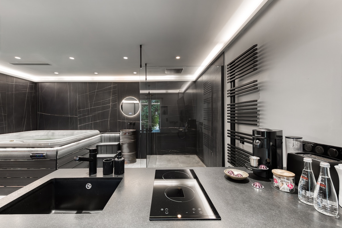 Dobrodošli v La CASALOVI, razkošnem zatočišču z edinstveno zasnovo, ki vključuje domači kino, ogromen zaslon, okroglo zakonsko posteljo, vrhunsko marmornato kuhinjo in kopalnico v slogu toplic z masažno kadjo za dve osebi in odprto prho. Toplo vzdušje, elegantna dekoracija rastlin in vrhunske storitve. Odlično za romantično bivanje ali sprostitev. Prepustite se doživetju Casalova za nepozabne trenutke sprostitve v osrčju toplega in elegantnega okolja.
