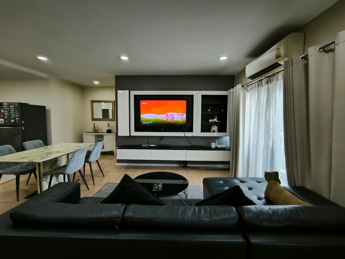 Enota je na novo prenovljena in okrašena v minimalnem slogu. Skupna površina je 78 m2, deljena z drsnimi steklenimi vrati, za eno sproščeno in udobno spalnico ter eno dnevno sobo s kuhinjo, jedilno mizo in televizijsko enoto. Wi-Fi povezava je opremljena s televizijskimi kanali z optičnimi vlakni. To je celotna soba za zasedenost. Uporabite lahko bazen in druge objekte. Bazen je dober, vendar je telovadnica majhna. Upoštevajte čas in pravila pri uporabi. Ker je Beverly Tower majhen nizkokrajši kondominij, zato vas prosimo, da ravnate dobro in ne povzročajte pretiranega hrupa, ki lahko moti zasebnost in mirno uživanje drugih lastnikov. Pošljite SMS ali sporočilo in odgovorili vam bomo takoj, ko bomo lahko To podstrešje se nahaja tik ob prometnih ulicah Bangkoka. Raziščite bližnje trgovine in supermarkete ali pa se sprehodite le 10 minut do nadzemne železniške postaje Nana BTS, da se podate na trg Siam. Naše bivališče je blizu javnega prevoza. Sprehodite se lahko 10 minut, priporočeno zjutraj in zvečer, do postaje Nana BTS (Skytrain), do katere se lahko odpravite na vhodno pot do trga Siam (Siam Paragon in Siam Center) mimo osrednjega mesta Chidlom in osrednjega sveta ter naprej do tržnice Vikend (postaja Chatuchak), če pa greste po odhodni poti, vas bo pripeljala do postaje Asoke, ki je izmenjava za MRT (podzemna železnica) in desno na postaji, terminal 21 - priljubljeni nakupovalni in živilski kompleks. Če greste dlje na postajo Promphong, boste dosegli nakupovalni kompleks Emiciptier/Emporium in naprej do postaje Thonglor, ki je najbolj trendovsko in živahno območje za fuzijsko obedovanje, pijačo in zabavo. Ob prvem prihodu bo varnostnik preveril z vami, preden vas bo spustil v prenočišče. Brez skrbi - varovalo vas bomo obvestili o času vašega prihoda in obdobju bivanja.