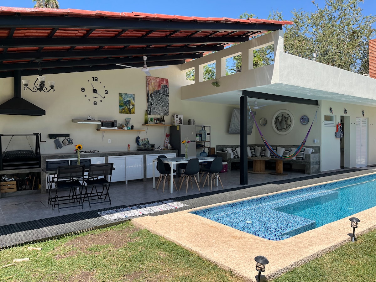 Sprostite se v tem mirnem in elegantnem prostoru. Odpravite se na oddih in se nekaj dni sprostite v bližini Guadalajare. Samo 10 minut od toplih vrelcev in 20 min od Ajijica. Stanovanje ima bazen, teraso, parkirišče, kopalnice in prhe ter nekaj korakov od morskih sadežev. Stanovanje ima 2 sobi z zakonsko posteljo, 2 kopalnici, 1 raztegljiv kavč, 1 raztegljiv kavč, internetno storitev Wi-Fi in kabelsko televizijo, Xbox konzolo, aparate in vse, kar potrebujete za bivanje.