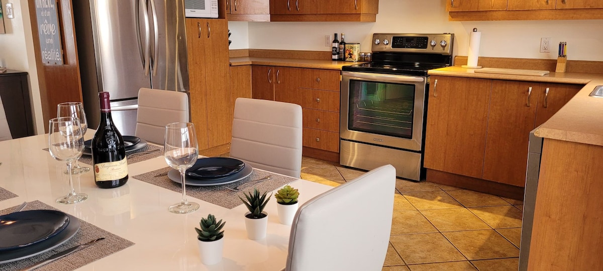 prostorno, popolnoma opremljeno stanovanje, ki se nahaja v osrčju mesta Boischatel, odlična lokacija za uživanje v Quebecu. Kuhinja, zakonska postelja (NOVA), pralno-sušilni stroj in velika dnevna soba z raztegljivim kavčem (zakonska postelja) za vse goste V stavbi vam je na voljo telovadnica. Brezplačno parkiranje v sklopu prenočišča, tik pred vhodom Manj kot 10 minut hoje do hotela Chutes-Montmorency, 5 min vožnje z avtomobilom do l 'Îles d' Orleans, 10 min od starega Quebeca in 25 minut od Mont-Sainte-Anne za vaše smučarsko potovanje!