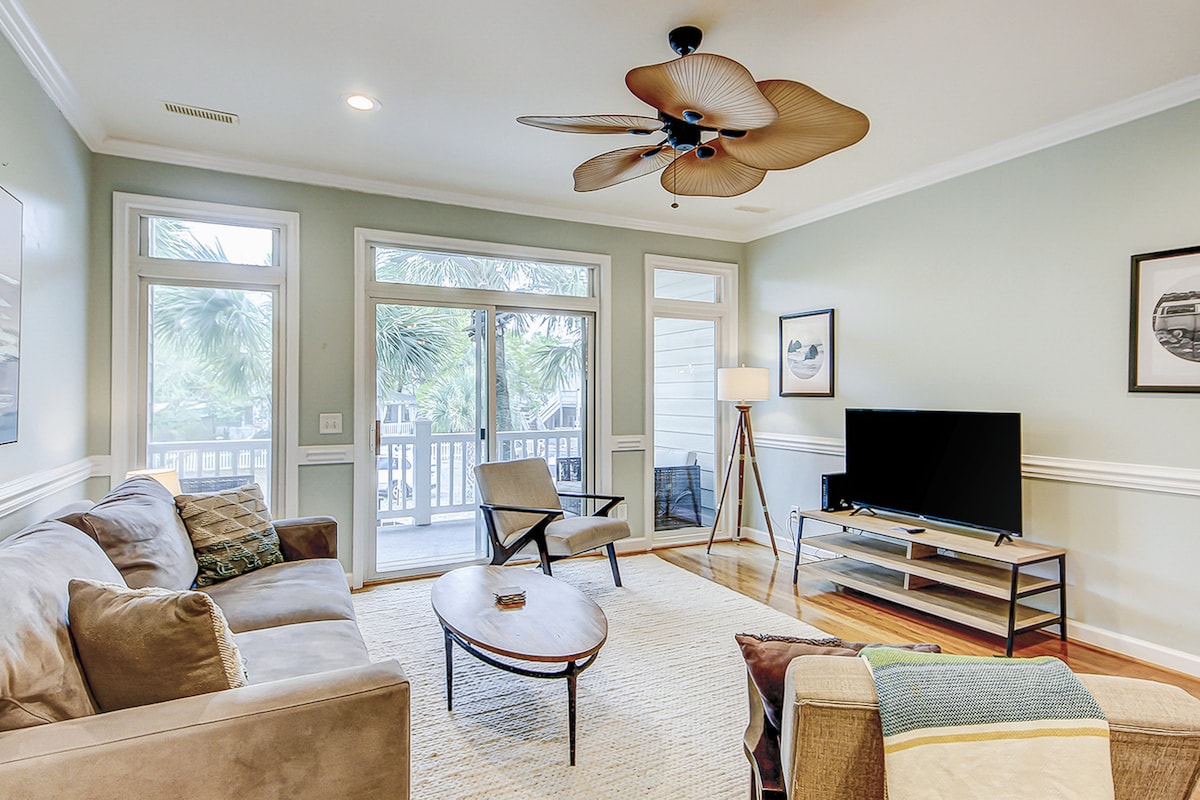 Prebudite se ob pogledu na ocean v tem prenočišču 2BR/2BA na plaži Folly Beach. Stopite skozi vrata čez cesto od plaže ali pa se sprostite na zasebni terasi na obeh straneh hiše s plažo in zalivom. V notranjosti uživajte v popolnoma opremljeni kuhinji, udobnem bivalnem prostoru in obalnem dekorju. Obe spalnici nudita udobje in zasebnost, kar je kot nalašč za pare ali družine. Sprehodite se ali pa se odpravite z vozičkom za golf do bližnjih trgovin, restavracij in pomola. Vaš popoln oddih ob morju se začne tukaj.