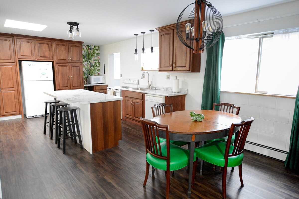 To elegantno in prostorno predelano stanovanje je polno opreme, da bo vaše bivanje nepozabno. Zasebna masažna kad na strehi - sprostite se pod zvezdami v ekskluzivnem prenočišču na prostem. Uživajte v biljardni mizi, pikadu, mokrem baru, 75-palčnem televizorju in klasičnih arkadnih igrah za večurno zabavo. Priključena ogrevana garaža, pralnica v enoti in nastanitev za največ 8 gostov. Le 5 minut od središča Kalamazooja boste blizu vsega, kar ponuja mesto. Kot nalašč za družine, prijatelje ali poslovne popotnike.