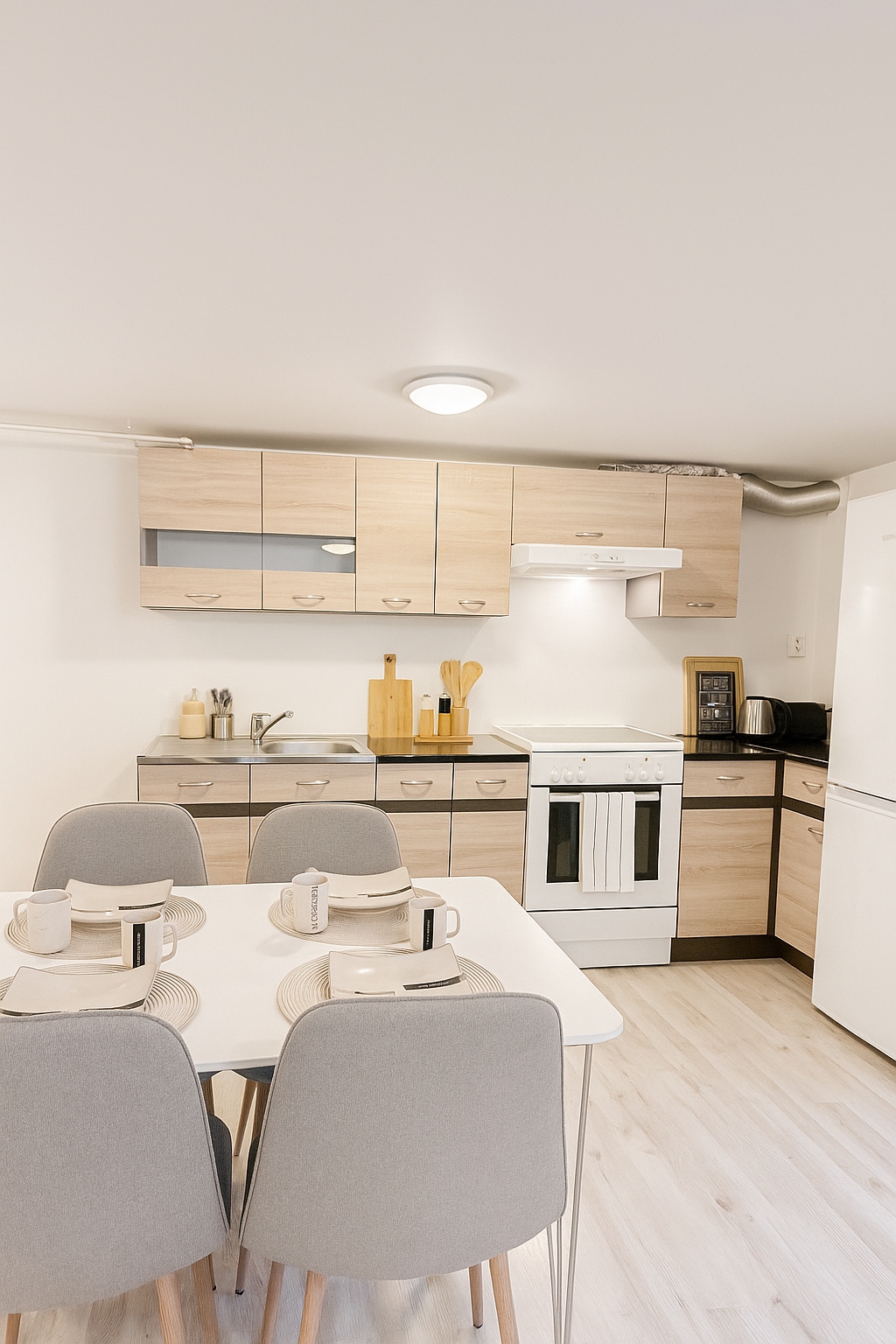 Koselig bolig nær shopping. Tomannsbolig og dette er underetasjen. Mulighet for innsjekk uten vert. -5 min kjøretur til shoppingsenter -15 min til Valfjället med 12 bakker BOLIGEN -Gratis parkering utenfor døren -Sov 1: dobbeltseng 150cm x 200cm -Sov 2: to senger 90cm x 200cm -Bad: dusj, håndklær, såpe, shampoo, balsam, dusjsåpe, hårføner -Kjøkken: mikro, vannkoker, kokeplater, komfyr, kjøleskap, fryser, pulverkaffe, te -Stue: Samsung smart TV med Netflix, 30 kanaler, brettspill