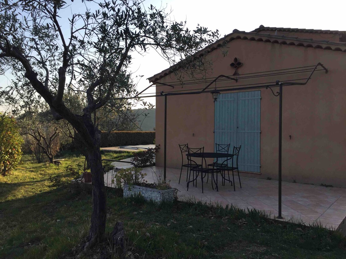 Centre Var proche mer Ste Maxime 35 km lac de Sainte Croix 40 km Gorges du Verdon 40 km à 3 km 5 du centre-ville de DRAGUIGNAN vers les villages de Lorgues et Flayosc Agréable pavillon indépendant climatisé de 30m2 sur un terrain de 4000m² arboré de chênes et d'oliviers 2 terrasses ombragées Piscine 4x8 chauffée (mi-mai/sept.) Idéal 2 adultes Possibilité 1 enfant - 5 ans dans le BZ Lit et chaise bébé Zone commerciale à 2 km 1 animal propre et bien élevé accepté ( sauf dangereux)