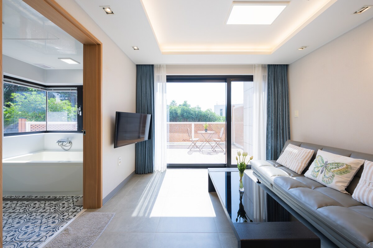 Povprečna ocena: 4,64 od 5, št. mnenj: 66Enoposteljna soba s strešnim salonom s pogledom na čudovito morje Seogwipo