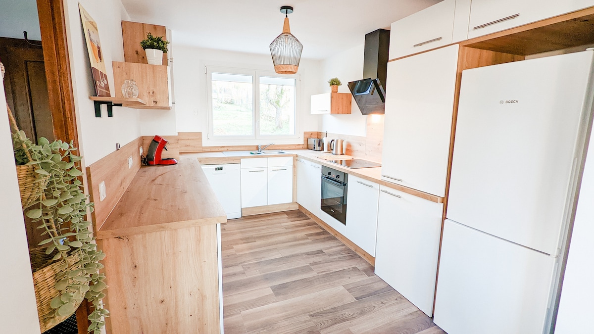 Klimatizirana hiša, dolina Meuse, peč na pelete ali reverzibilna klimatska naprava, 60 m2, terasa z žarom. Opremljena kuhinja, Senseo, aparat za filter kavo, komplet za raclette, mikrovalovna pečica, grelnik vode, opekač kruha, pečica, pralni stroj, kopalnica, dnevna soba/TV. Pergola, vrtno pohištvo. Odlična vojna mesta, zelena steza... Rjuhe in brisače na zahtevo z doplačilom, vrnite čisto namestitev, ker za ta predmet zaračunamo malo, da ne bi povečali cene nočitve. Majhni hišni ljubljenčki, sprejeti na zahtevo vnaprej.