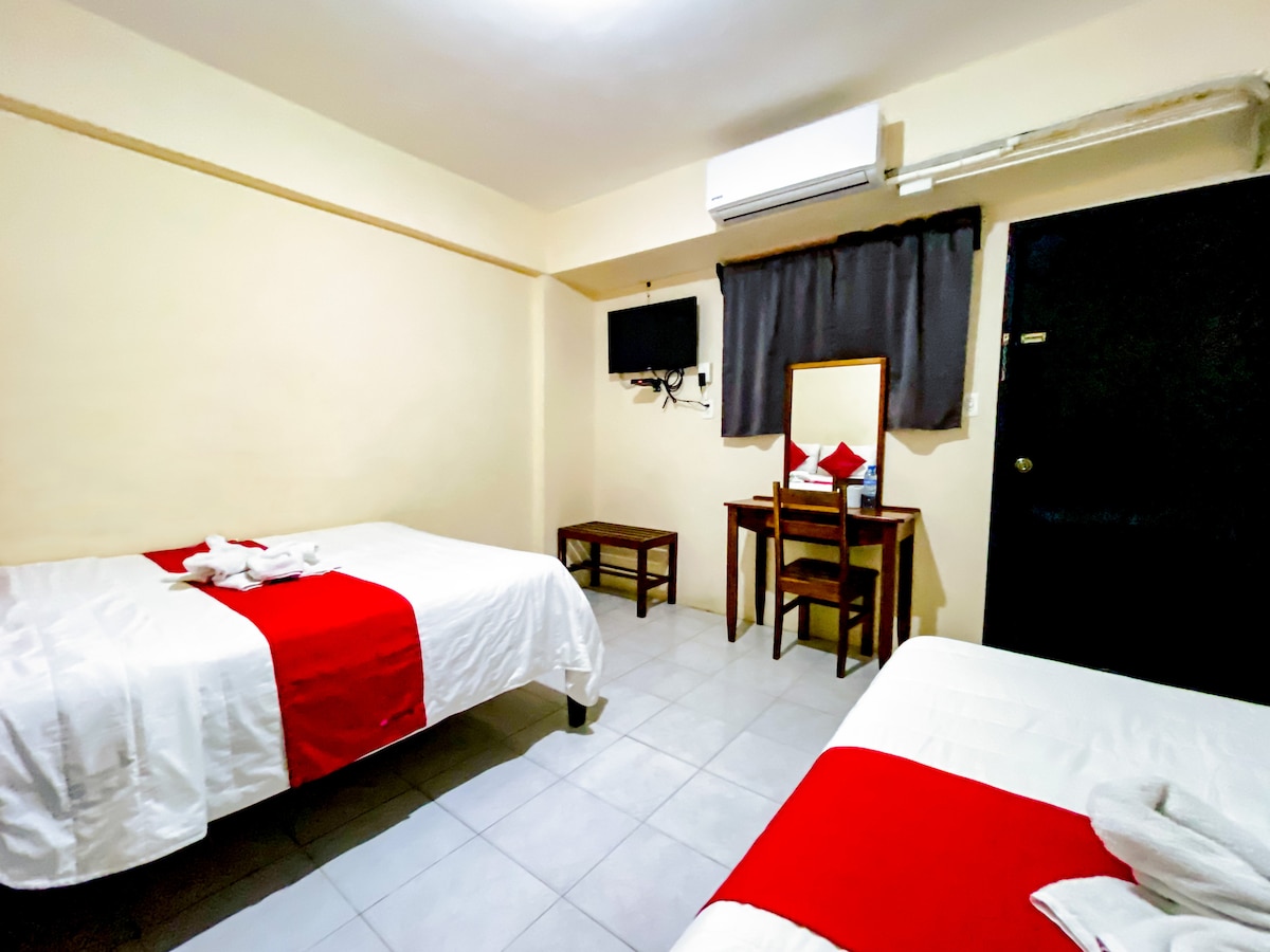 TO JE MAJHEN HOTEL, KI IMA 1 ZELO UDOBNO IN ČISTO SOBO: DELUX SOBA ZA 2 OSEBI, ZAKONSKA POSTELJA, S KLIMATSKO NAPRAVO, TV, WI-FI IN PARKIRIŠČE. SREČALI SE BOMO 500 MTS. PLAZA LAS AMERICAS, 4 MINUTE OD MEDNARODNEGA LETALIŠČA CHETUMAL IN 3 MINUTE OD AD0.