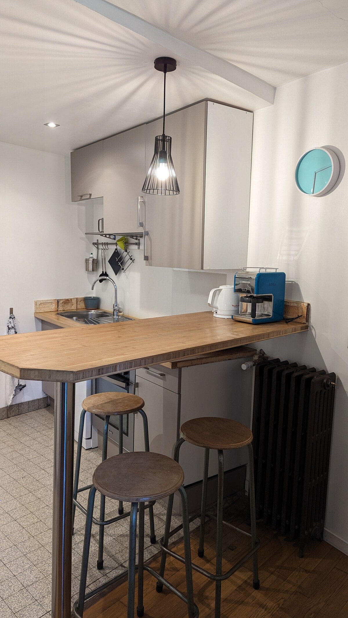 L’Atelier est un cottage lumineux et chaleureux, idéal pour des séjours en famille ou entre amis. Il accueille jusqu’à 8 personnes en hébergement, avec possibilité d’ajouter lits bébé ou matelas enfant. La grande table permet de dîner à 8, une table d’appoint peut être ajoutée pour 15 convives. Cuisine ouverte, mobilier chiné, tableaux originaux et poêle à bois. Jusqu’à 14 personnes avec les chambres de la maison attenante. À 3 min d’Épernon, aux portes de Paris.