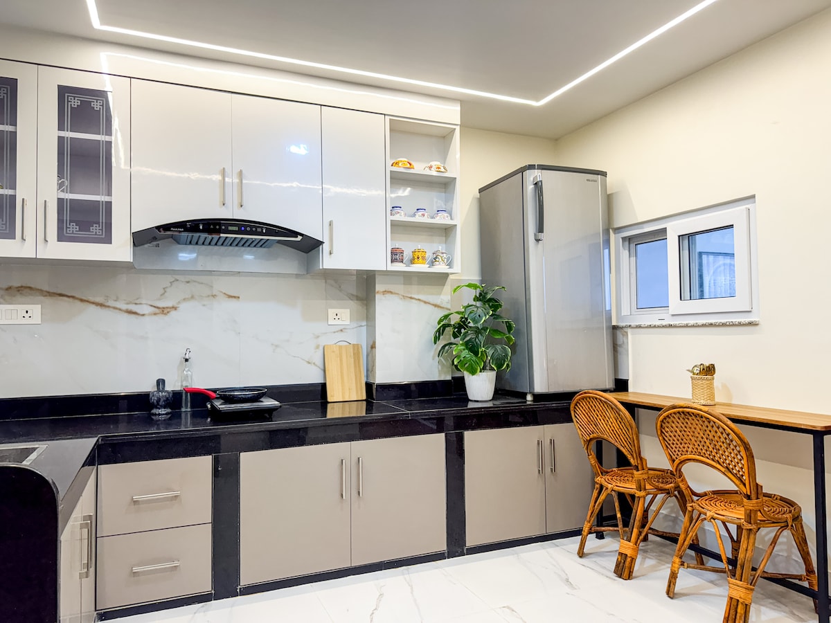 Sodobno STANOVANJE v Saaluju je sestavljeno iz visokega stropa, kjer sončna svetloba zadene in osvetli celotno stanovanje. Uživajte v našem prostornem stanovanju, ki je sestavljeno iz 1BHK z eno dodatno sobo v ŠKATLI, popolnoma opremljeno kuhinjo, zunanjim pohištvom in zasebno streho samo za vas. Z našo razkošno notranjostjo in popolno zasebnostjo v zgornjem nadstropju se boste počutili, kot da je to vaš zasebni dom!