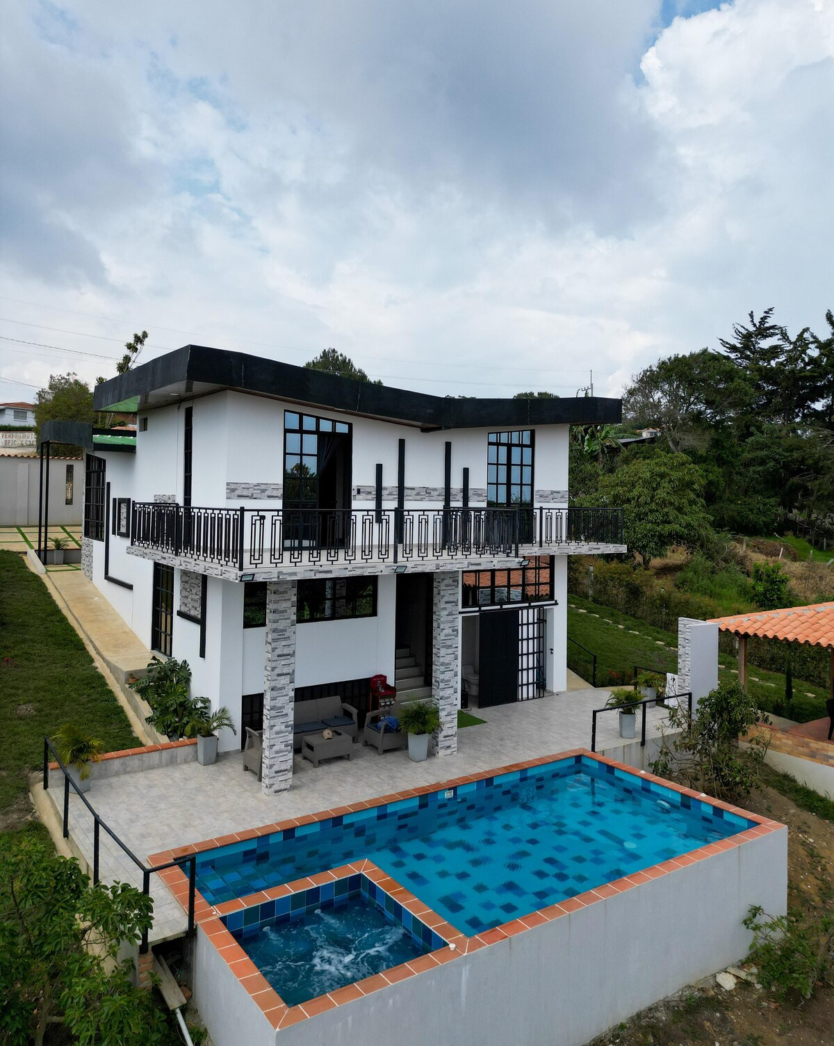 ¡Bienvenidos a tu escapada de la rutina! Descubre nuestra moderna y lujosa finca privada diseñada para 20 personas donde podrás gozar de la relajante piscina y jacuzzi, al igual que la ámplia zona de BBQ y área de picnic. Además de los históricos y tradicionales juegos colombianos (bolo criollo, el tejo, la rana). Nuestra confortable finca cuenta con accesibilidad para personas en silla de ruedas. No esperes más, reserva ahora y crea recuerdos inolvidables en este paraíso colombiano.