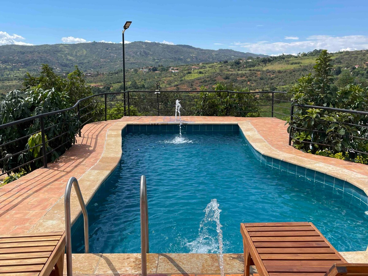 Take it easy at this unique and tranquil getaway with spectacular Canyon view of the Chicamocha and the river, New Chalet , totally equipped, Artisan Oven, Hammocks, Texas Rocket Chairs, Open Natural Shower with Canyon view, Breakfast included, Own garden, bbq and fire pit plus enjoy the walk at the rural roads, or walk inside the farm, enjoy the coffee plants and few fruit trees, and vegetable garden. Enjoy your private canyon retreat...
