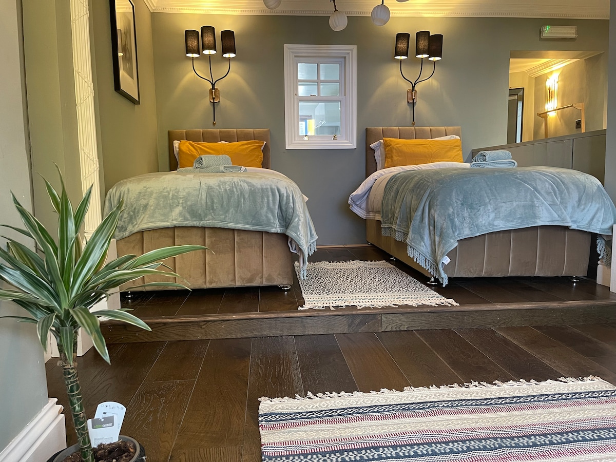 🎥The "Hollywood" suite. Retreat to this coy budget bolt-hole, set in the heart of the best Southsea has to offer! Blizu vseh restavracij in barov, vendar na zasebni lokaciji. Idealna baza za pare/samske. Dvoposteljna spalnica in kopalnica s kadjo in prho. Pametna televizija z Netflixom itd. Zunanja miza. Mestna kolesa za gospe in gospodje. 🚘 Dodeljeno parkirno mesto je mogoče rezervirati (odvisno od razpoložljivosti) po znižani ceni za goste v višini 10 £/noč (omejitev višine 2 m).