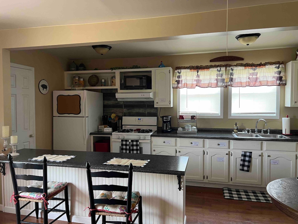 Completely private suite with its own entrance nestled on 5 acres . Aprox 900sq wing on a 5300sq house. Private entrace. Separated from main house with double doors that will be locked on BOTH sides. Very spacious open area featuring a full kitchen, living room, and loft with twin bed. Private Queen bedroom with closet. Private bathroom with shower and laundry. 2 Mini-splits heat and air. 1 QUEEN BED, 1 TWIN, 1 AIR MATTRESS AND 2 COUCHES. Centrally located between Knoxville and Chattanooga, TN.
