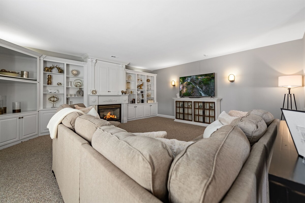 Uživajte v svojem domu stran od doma. Udoben apartma ima prostorno SPALNICO Z ZAKONSKO POSTELJO in udobno dnevno sobo s kaminom. Razkošna kopalnica v spalnici z globoko namakalno kadjo bo odvrgla vaš stres. Zasebni dostop in vhod s tipkovnico vam bosta zagotovila možnost, da pridete in odidete, kot želite. Za vaše udobje vam nudimo majhen hladilnik, mikrovalovno pečico in kavarno s prigrizki. Uživajte v gugalnici pred sobo z jutranjo kavo. Na zahtevo uživajte v novi ognjišču.