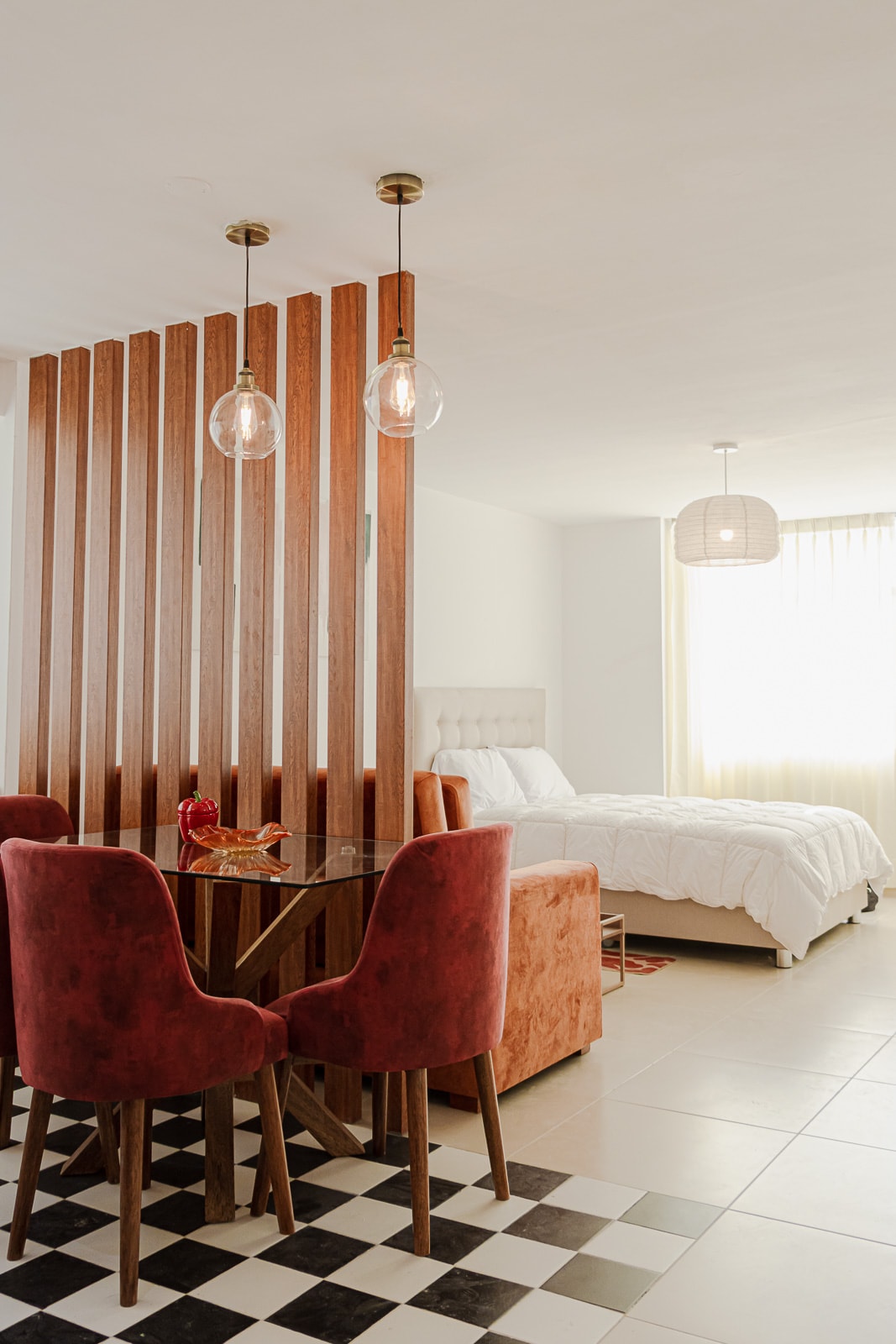 V stanovanju Aurea se boste počutili kot doma. Spektakularno, toplo in centralno mini stanovanje v tretjem nadstropju, zasnovano za udobno počivanje, popolnoma opremljeno in elegantno urejeno. Naš minidepartamento se nahaja 5 minut od središča mesta Chiclayo in postavlja mesto pod vašimi nogami. Od pomembnih poslovnih centrov do najboljših restavracij - vse je v nekaj minutah hoje. Vsekakor kot nalašč za prihranek časa in potovanje brez težav.