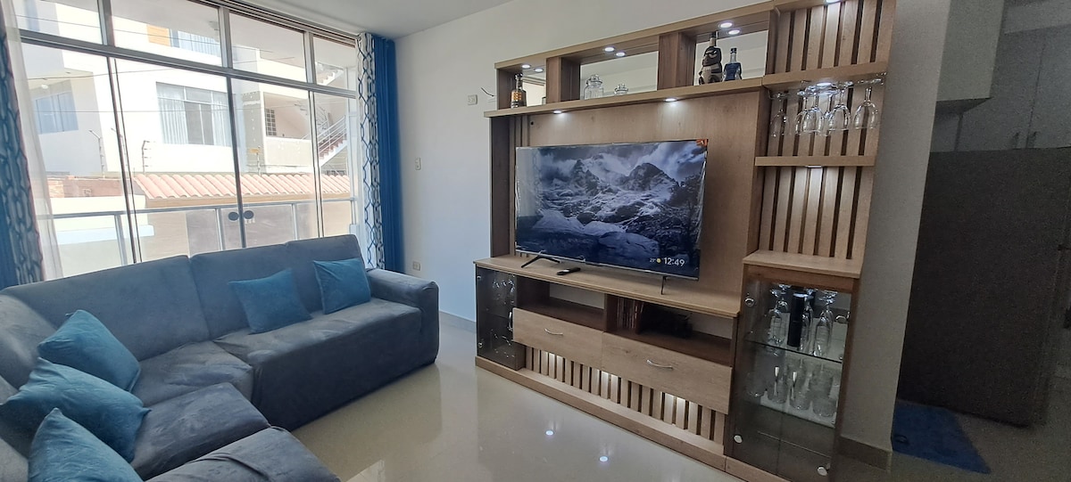 Uživajte in počivajte v mirnem in udobnem prostoru s pogledom na plažo Pimentel, v bližini trga Plaza de Armas, Pollerias, restavracij, supermarketov, Malecóna, zgodovinskega pomola. Sprostite se po napornem potovanju s toplo ali hladno vodo, ki je idealna za par. Povežite se z visokohitrostnim internetom, televizijsko platformo, serijami in filmi (MagisTv) ter pripravite okusno kosilo s popolnoma opremljeno kuhinjo. Samo 30 minut od mednarodnega letališča José Abelardo Quiñones