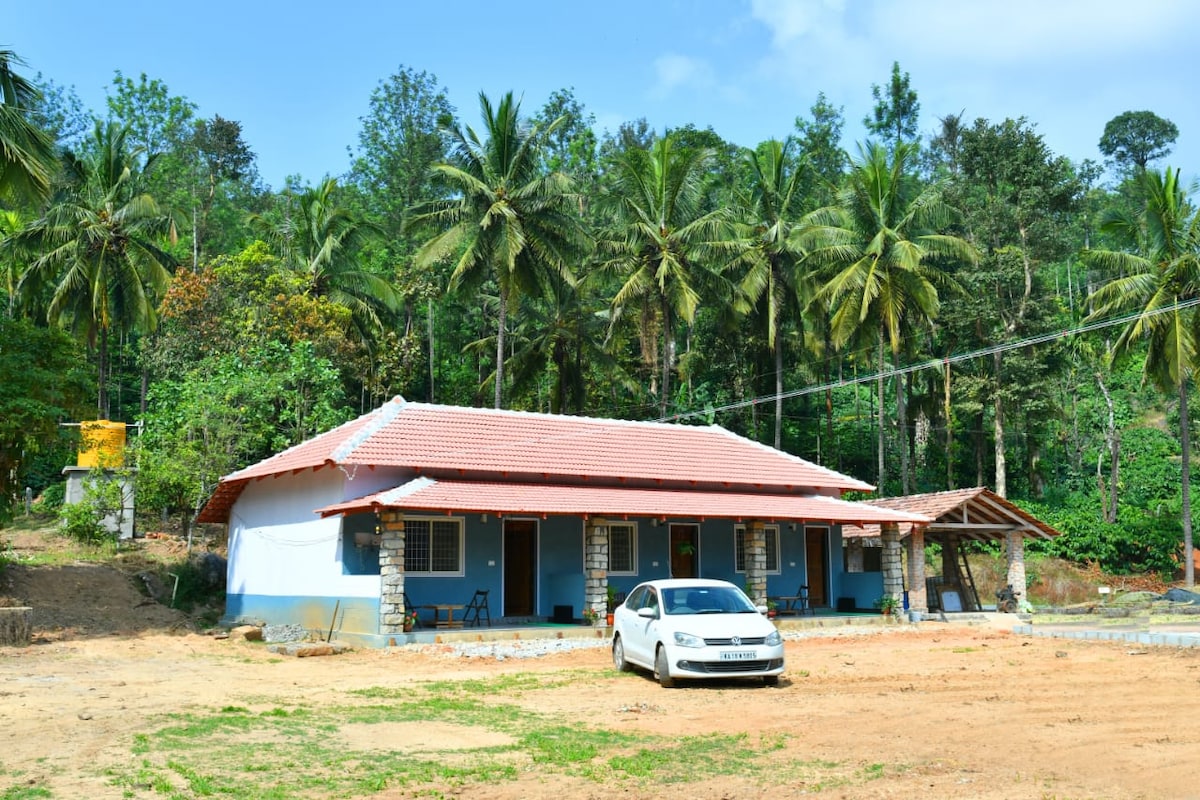 Veg Samo 🍃dobrodošli na našem prijetnem bivanju na kmetiji, ki se nahaja sredi bujne nasade kave v zahodnem Ghatu na Karnataka. Naša kmečka hiša ponuja rustikalno in pristno doživetje, obdano z griči. Naše prenočišče na kmetiji ima dve spalnici, dnevno sobo in kuhinjo. Gostje se lahko zbudijo ob petju ptic in uživajo v skodelici lokalno pridelane kave. Med bivanjem lahko obiščete bližnje kraje ali pa se preprosto sprostite in pomladite v mirnem kavnem okolju.