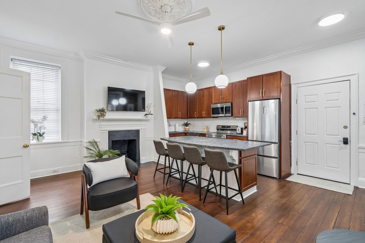✨ Dobrodošli v The Palms of Charleston – Suite B! 🌴 ☀️ Veliko dvorišče z masažno kadjo 📍 1 ulica do ulice King St – sprehod do najboljših restavracij, nakupovanja in nočnega življenja v Charlestonu 🌿 Balkon z sedeži 🚙 Parkiranje izven lokacije za 1 vozilo 🛏️ Udobne vzmetnice 📺 Smart TV – pretočni prenos je vključen 🛜 Hitri Wi-Fi + pisalna miza 🫧 Pralni/sušilni stroj 🍳 Popolnoma založena kuhinja ☕️ Lokalna kava in pripomočki Orodja 🚿 za lase so na voljo 🎶 Gramofon + igralna konzola