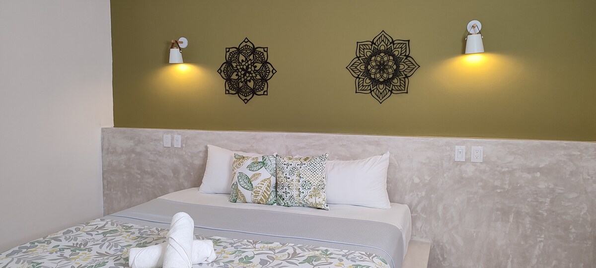 Holbox 4 - širša zakonska postelja (King), 5 minut hoje do plaže, klimatska naprava